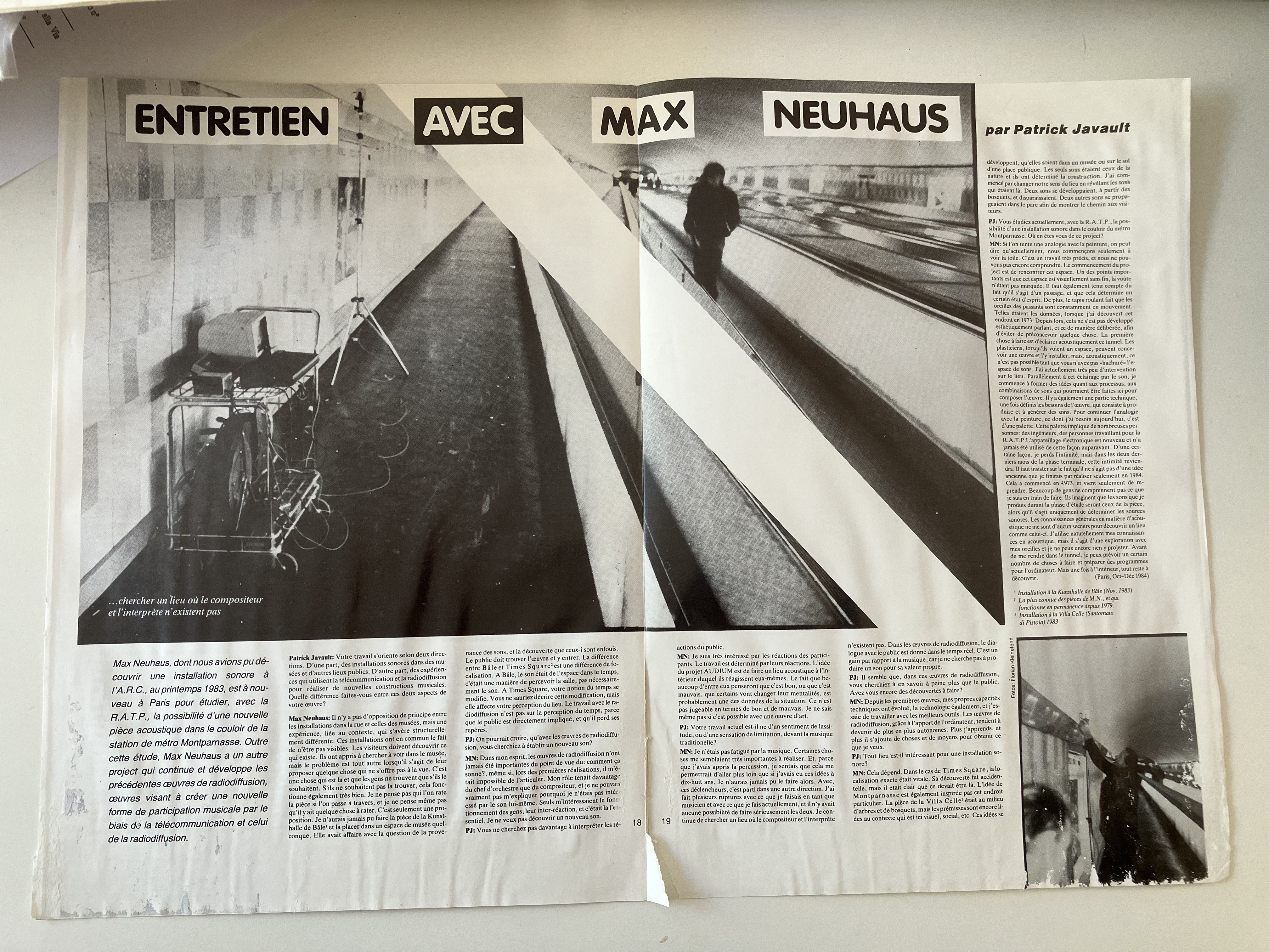 In 1984, the French association Catalog Ecoute, in partnership with RATP, published a catalog for a potential Max Neuhaus sound work at the Montparnasse–Bienvenüe Métro station in Paris. The work itself was never realized