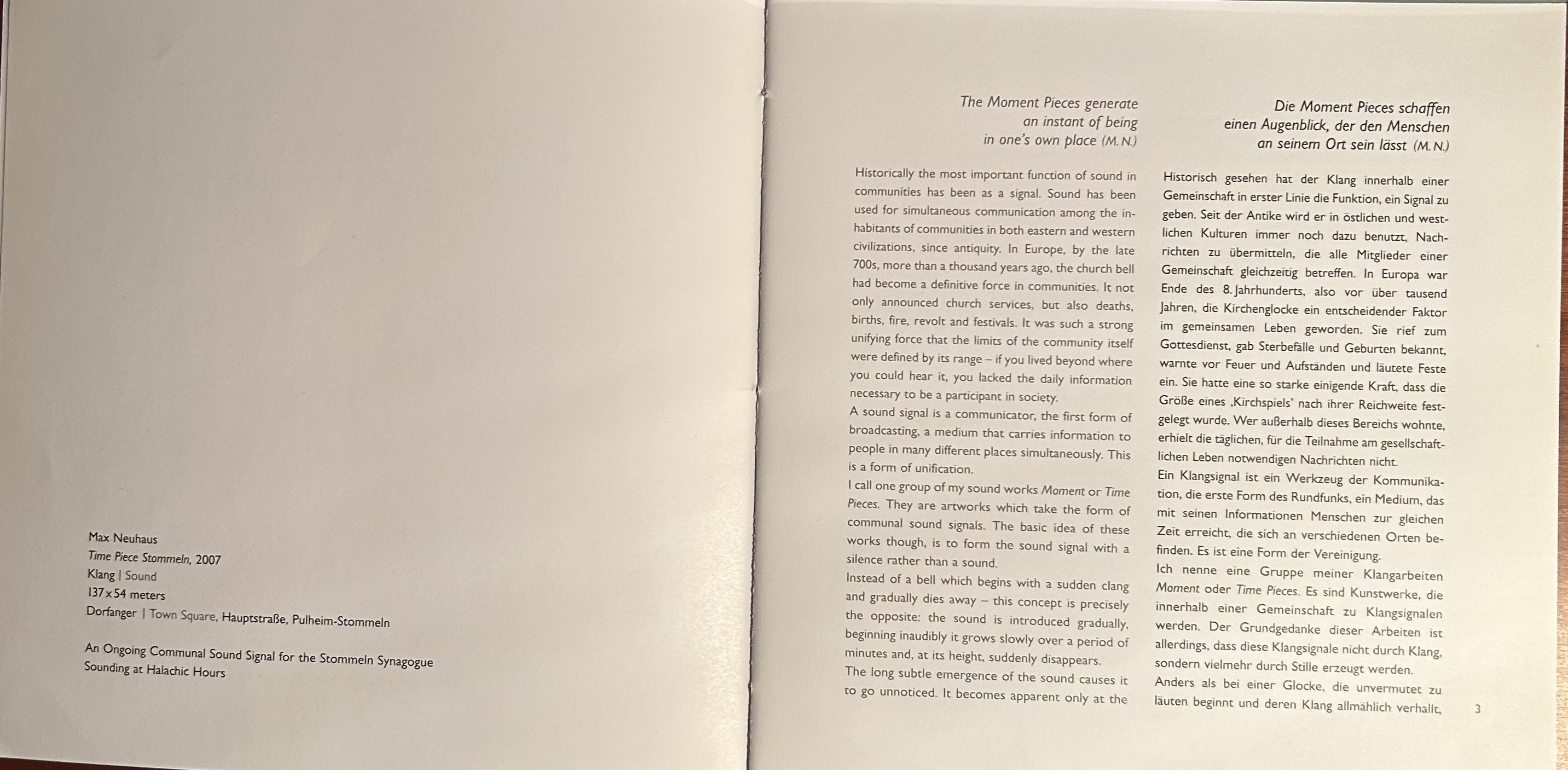 from his sound workTime Piece Stommeln created