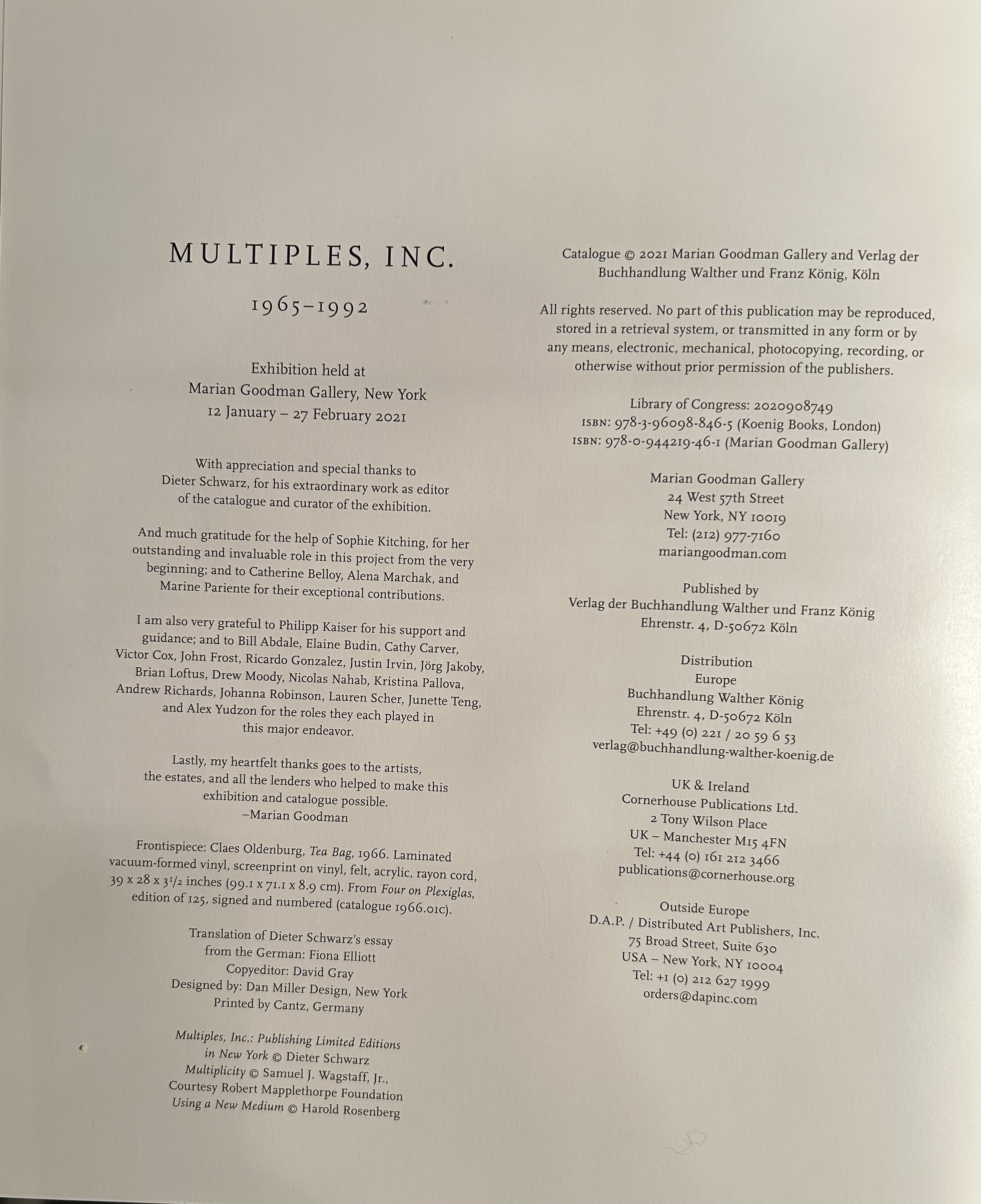 Foreword by Marian Goodman. Text by Dieter Schwarz, Samuel Wagstaff Jr., Harold Rosenberg. PUBLISHER WALTHER KÖNIG, KÖLN,