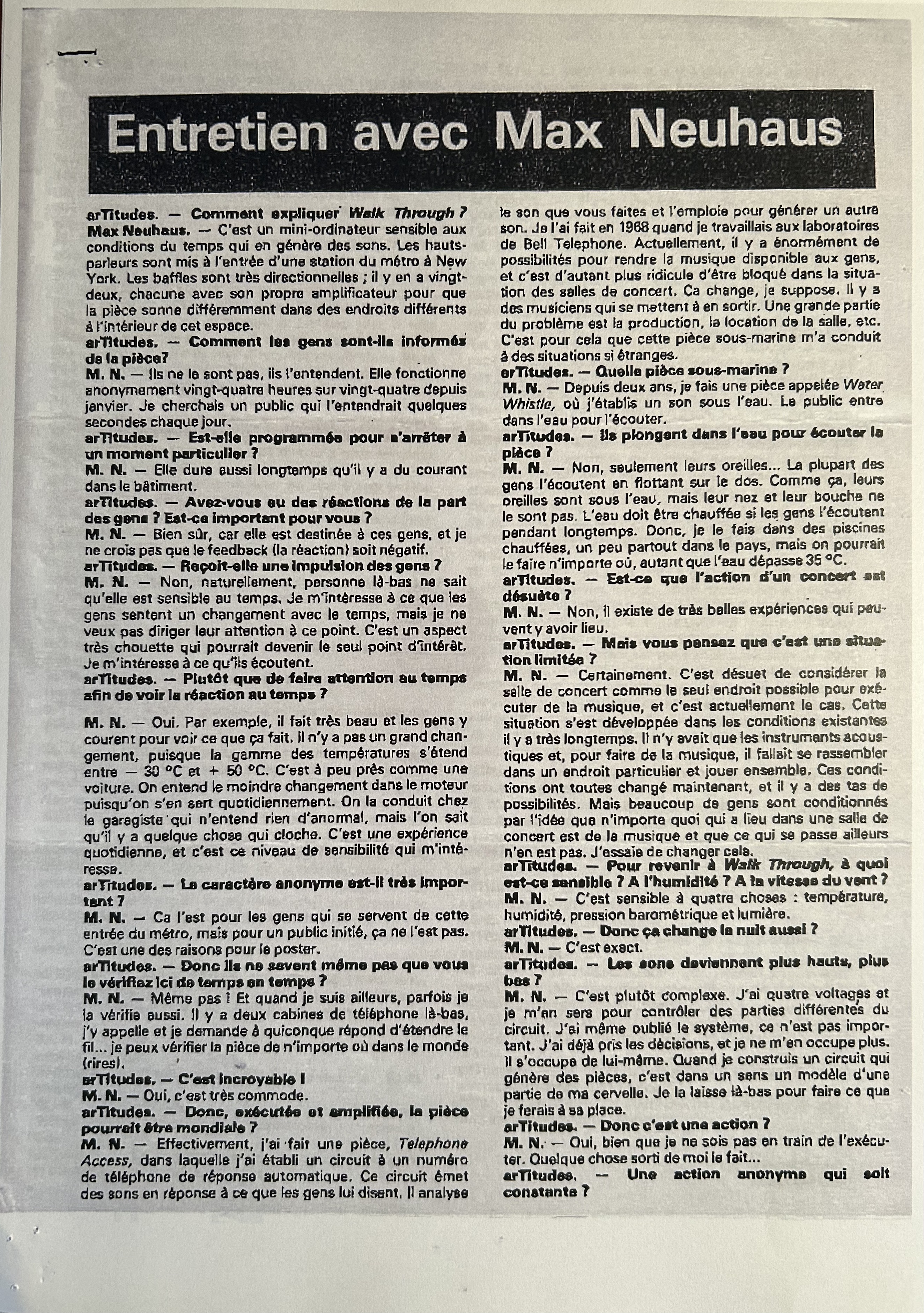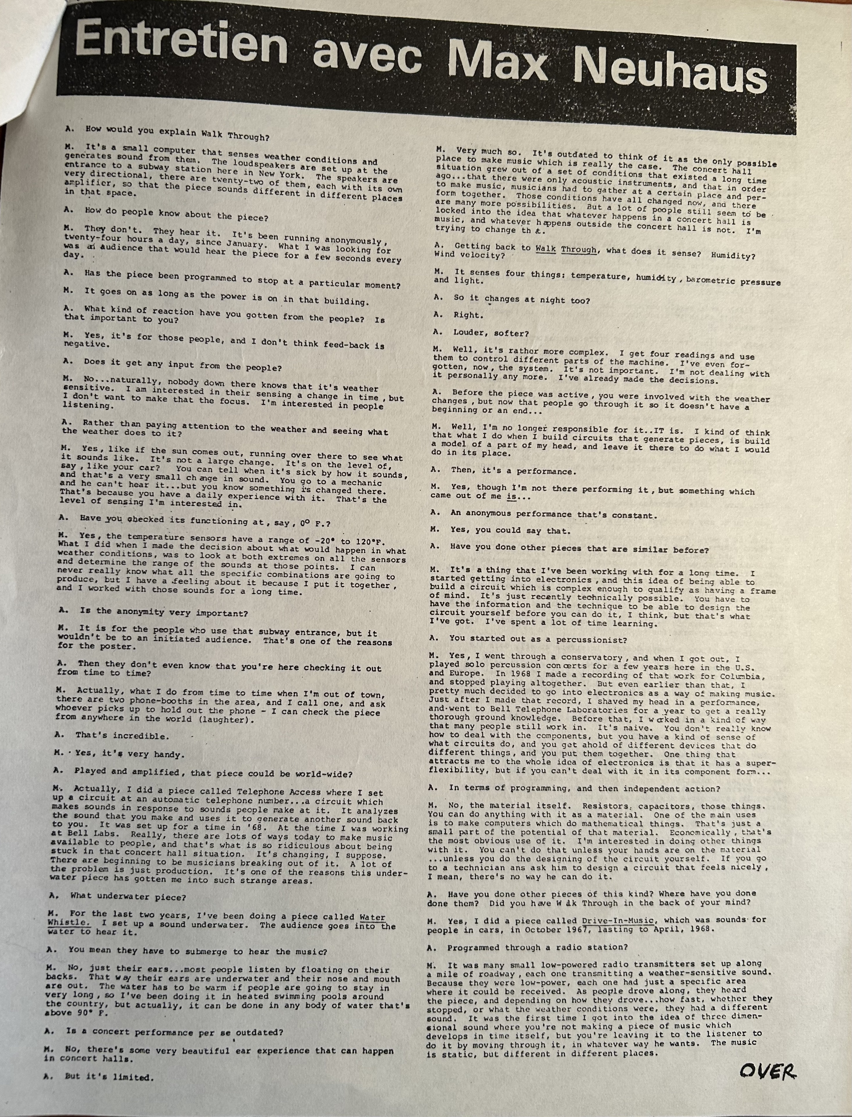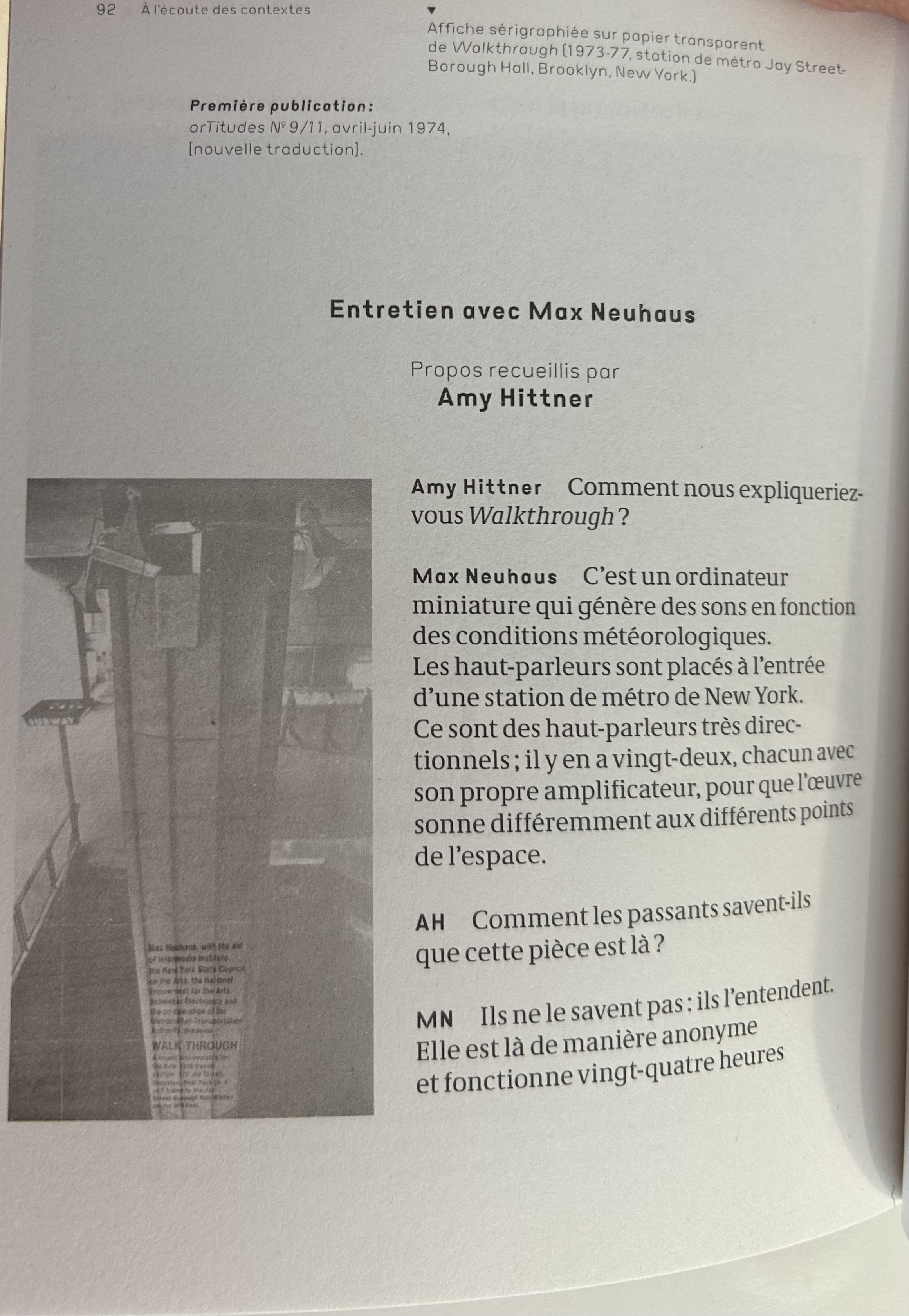 Max Neuhaus, Les pianos ne poussent pas sur les arbres, Daniele Balit, Matthieu Saladin (éd.), Marie Verry (trad. fr.), Dijon, Les presses du réel, 2019.
