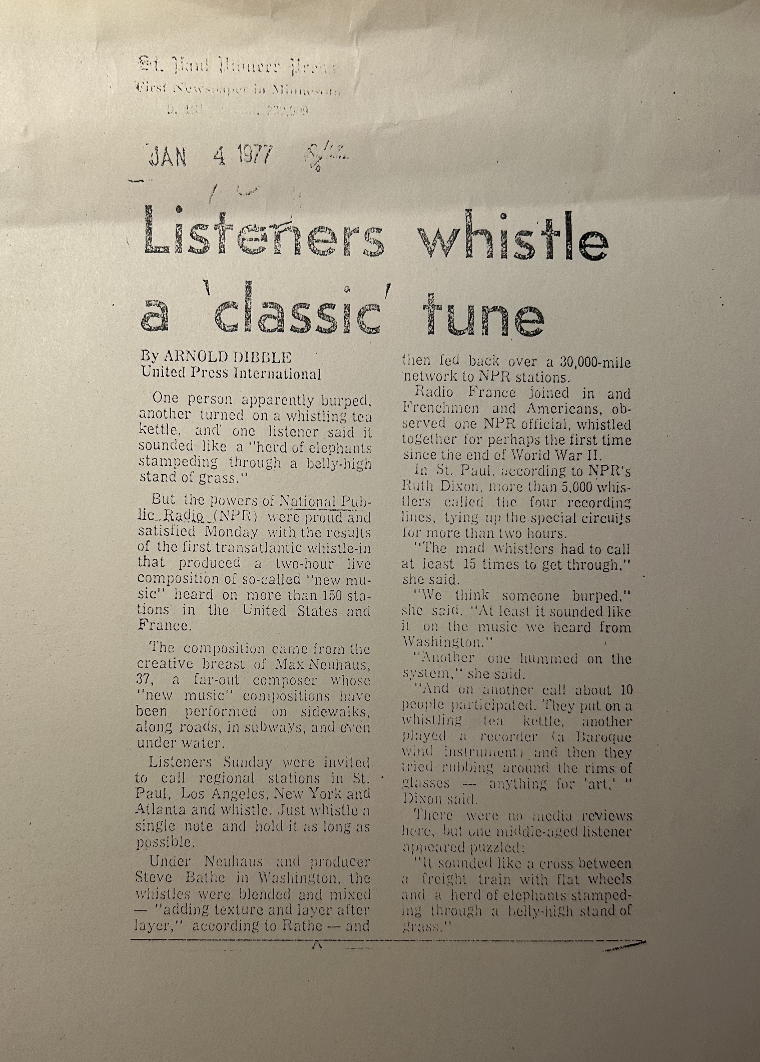 Arnold Dibble, Listeners whistle a 'classic' tune, St Paul Pioneer Press, Jan 4, 1977