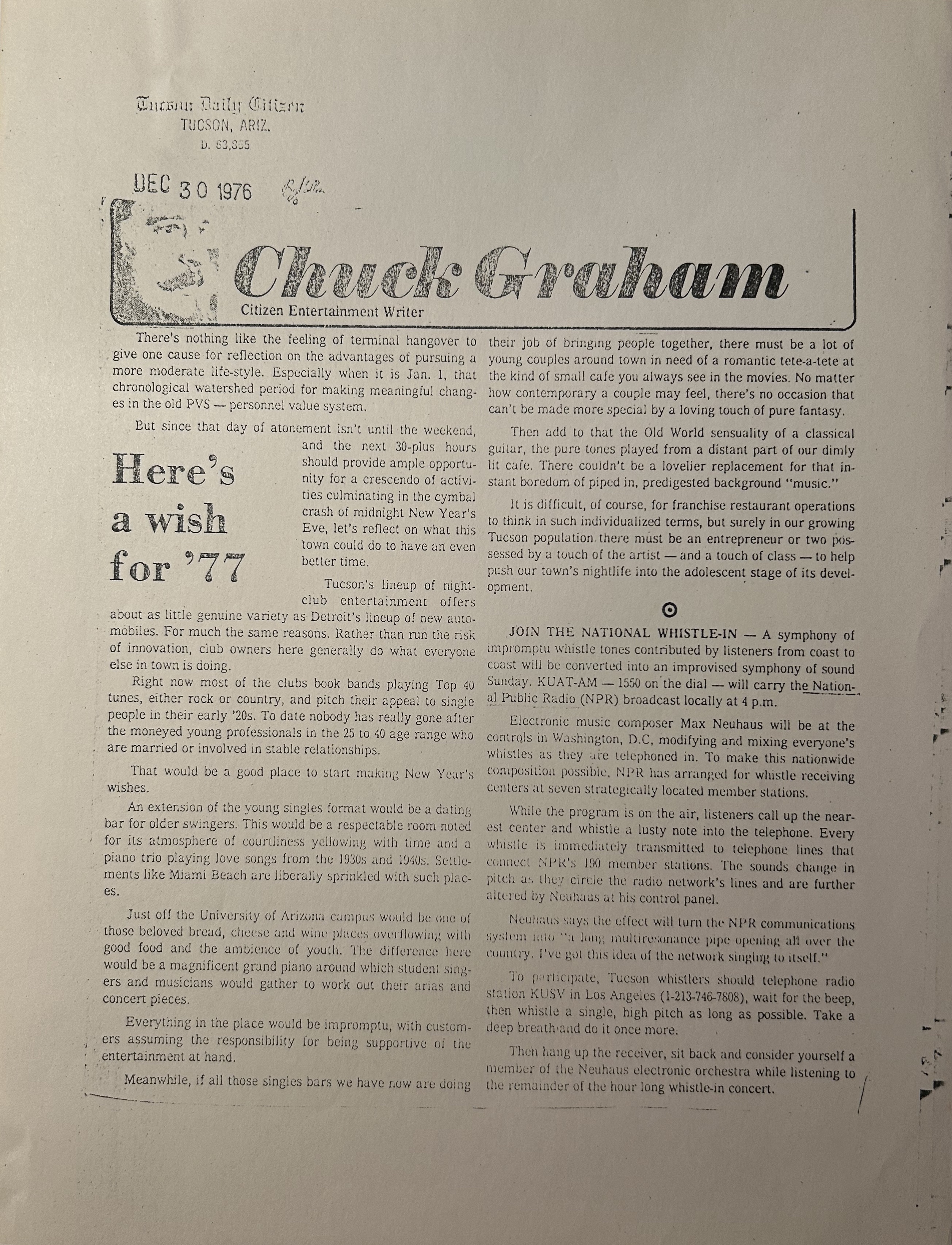 Chuck Graham Here's a wish for '77, Tucson Daily Citizen in Tucson, Arizona, Dec. 30 1976