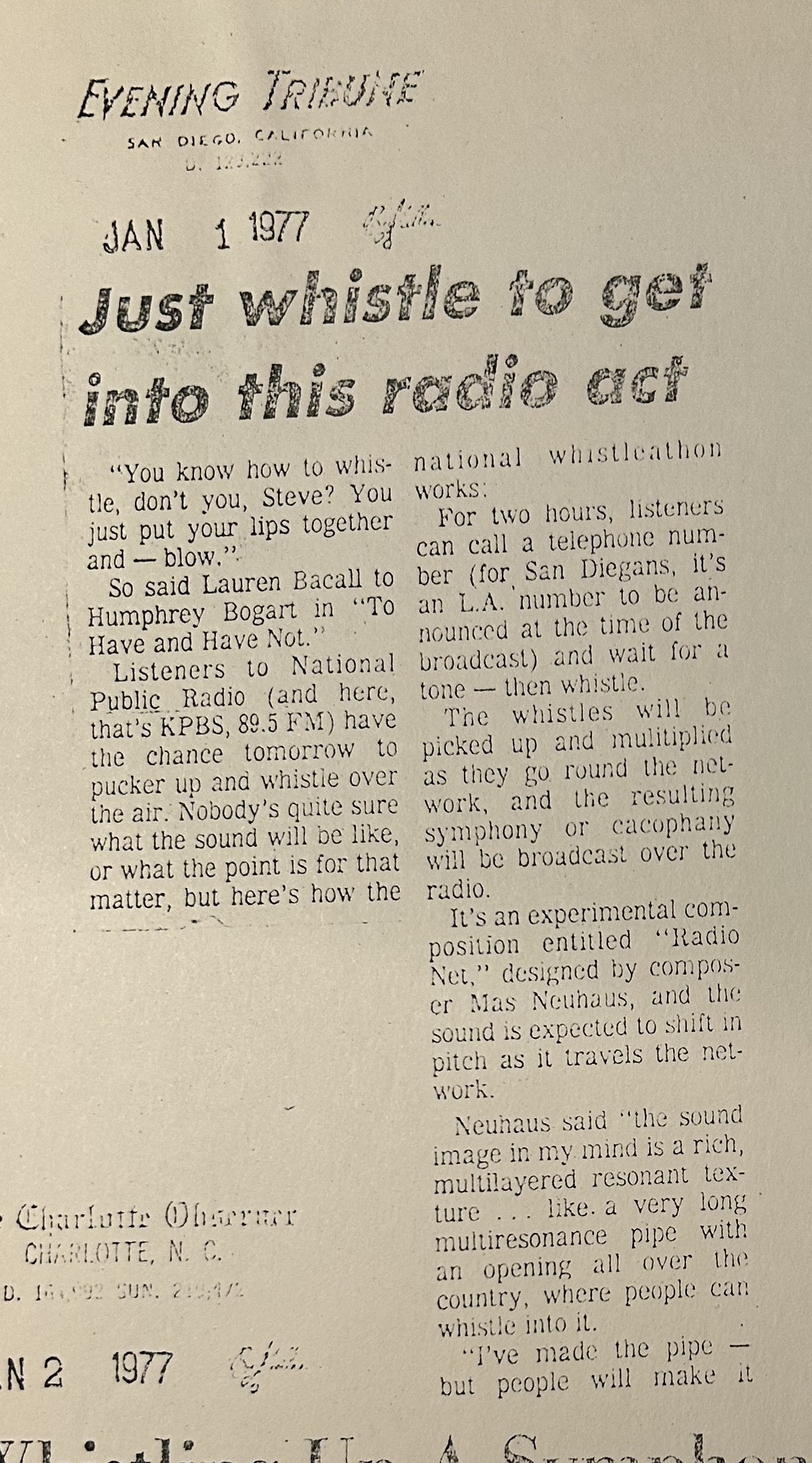 'Just Whistle to get into this radio act'. Evening Tribune, Jan 1, 1977