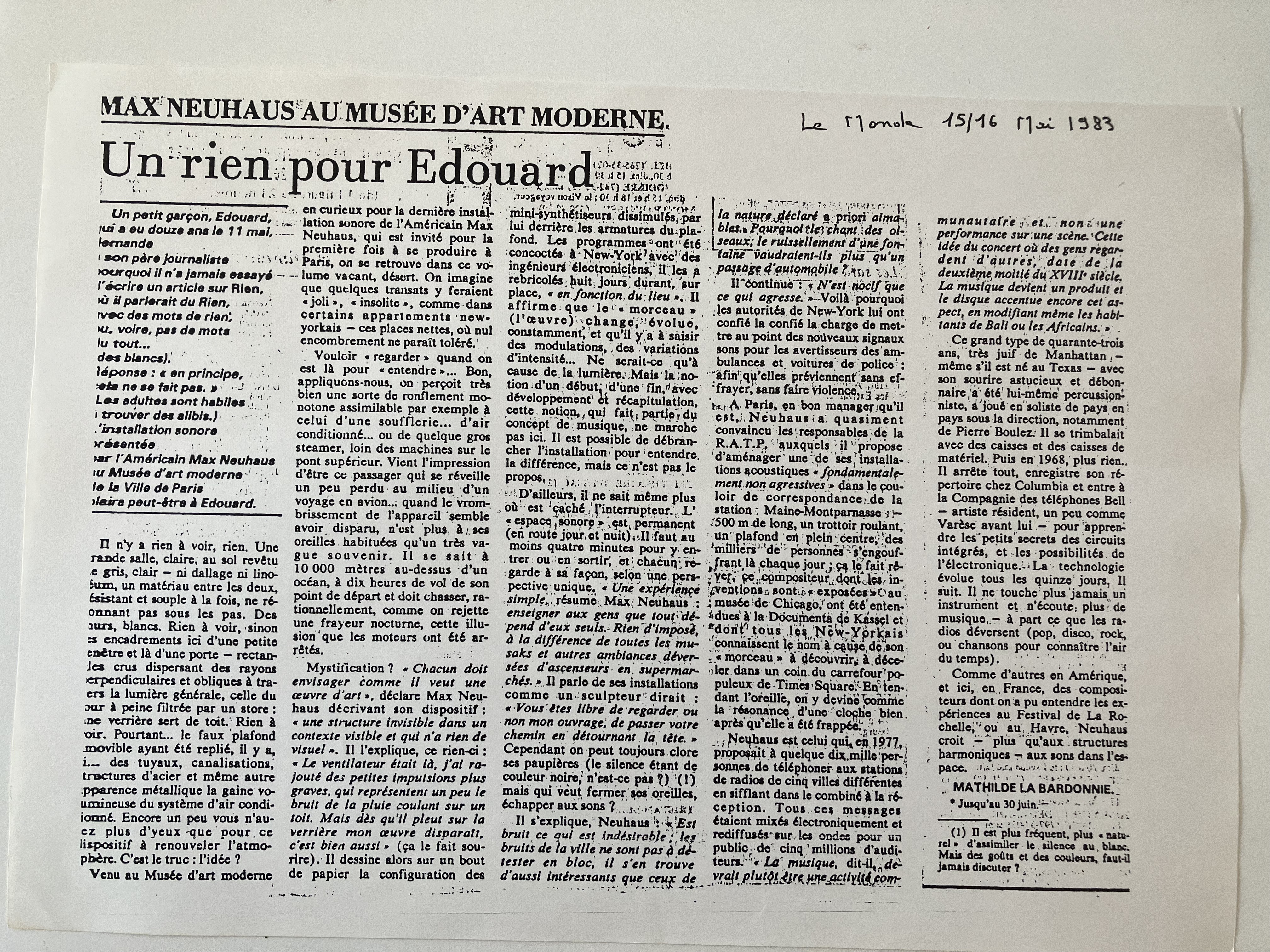 Le Monde, " Un rien pour Edouard" by La Bardonnie Mathilde,, Paris, 15-16 Mar. 1983