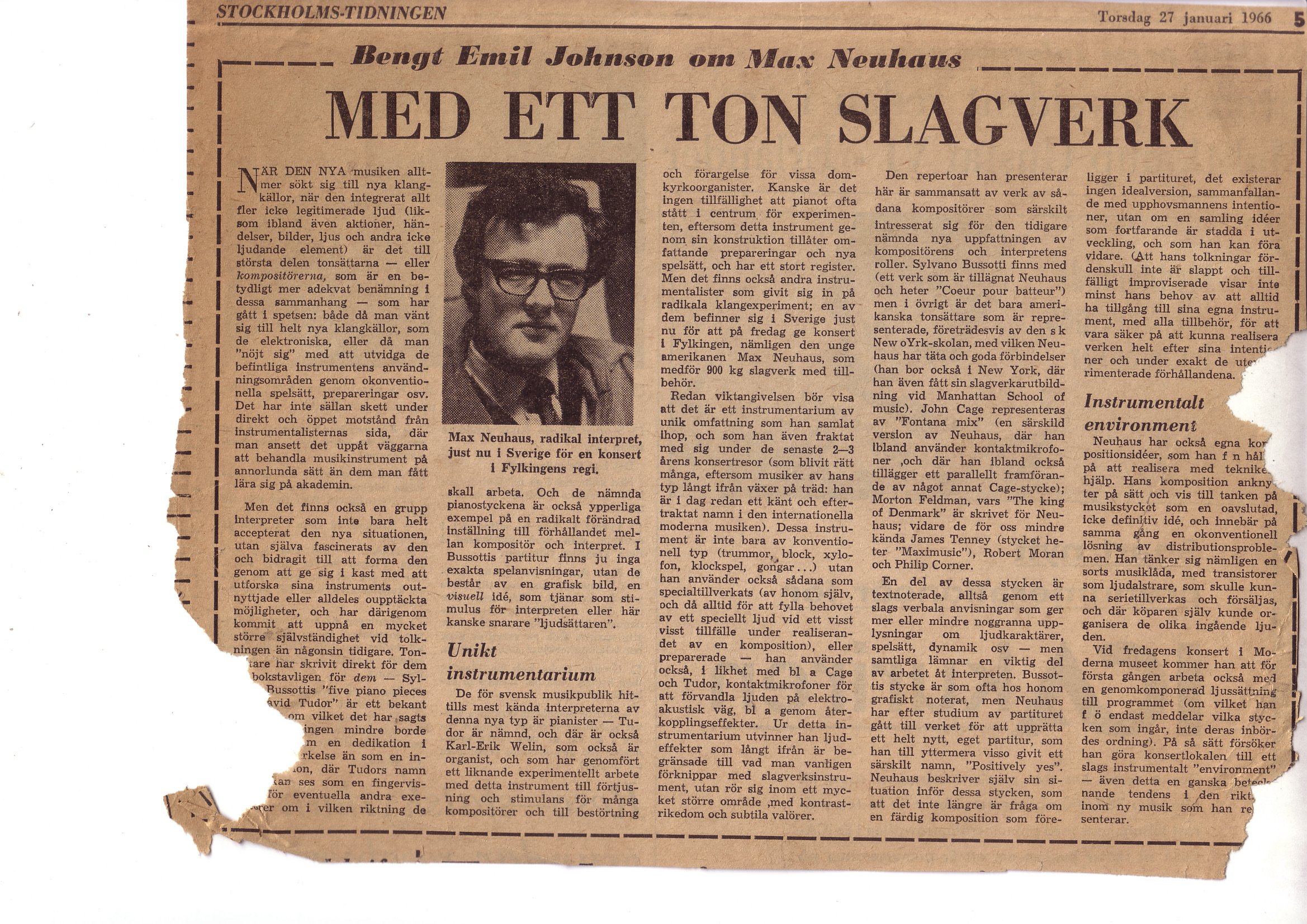 Johnson Emil, "Met ett Ton Slagwerk" Stockholms-Tidningen, Jan 27, 1966