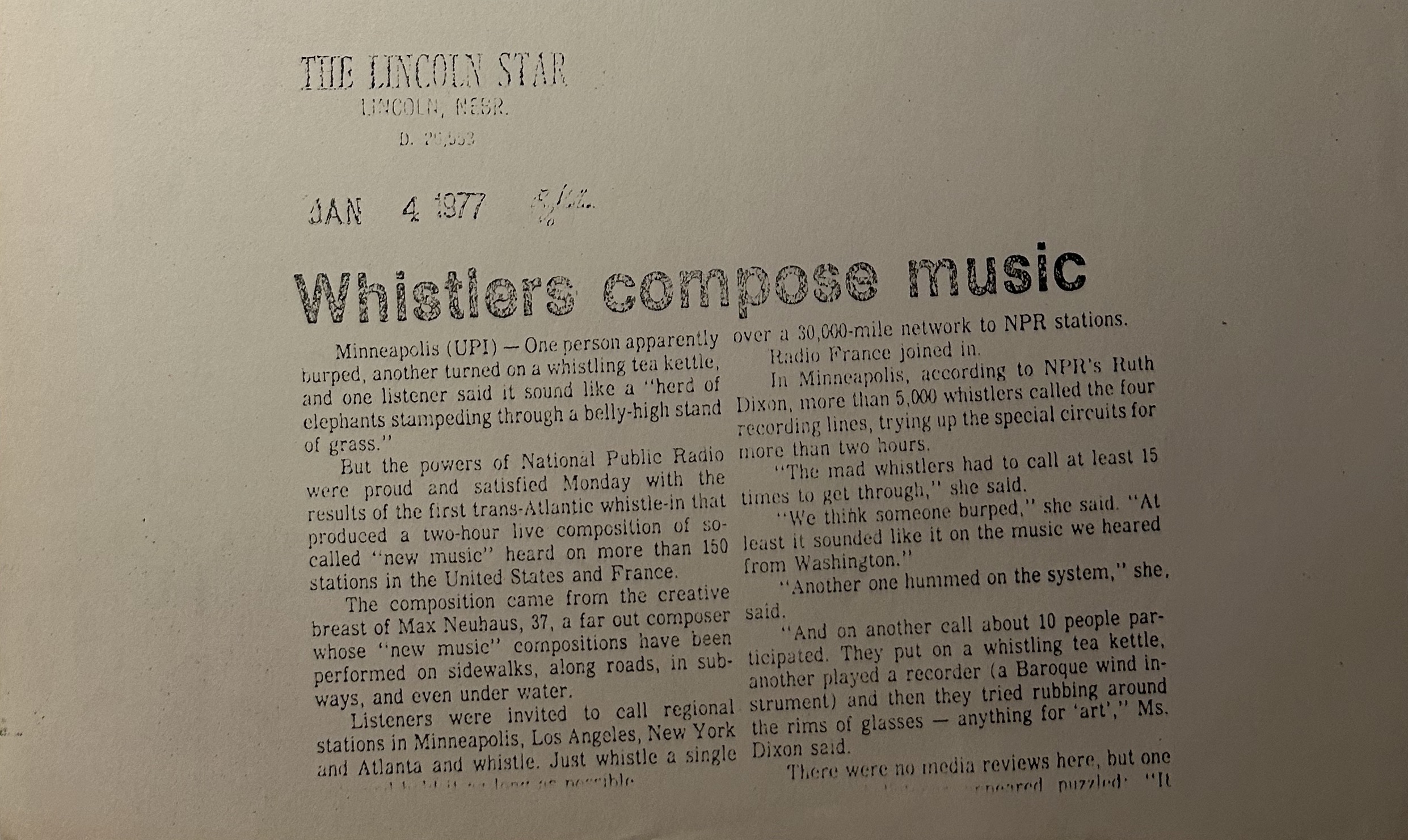 'Whistlers compose music' The Lincoln Star, Minneapolis, Jan 4, 1977