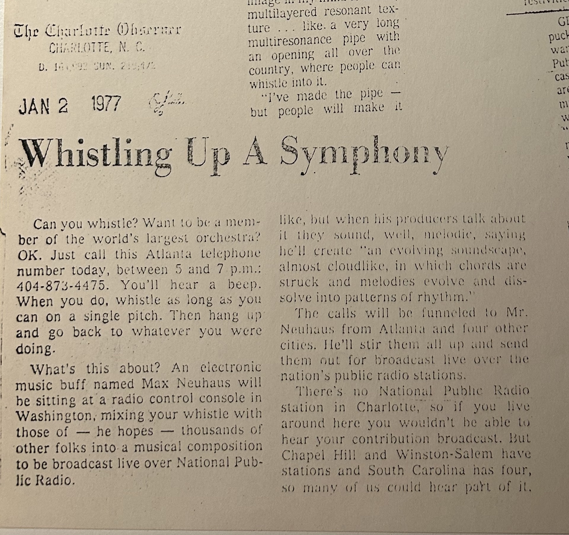Whistling Up A SYmphony, The Charlotte, N. C., Jan 2, 1977