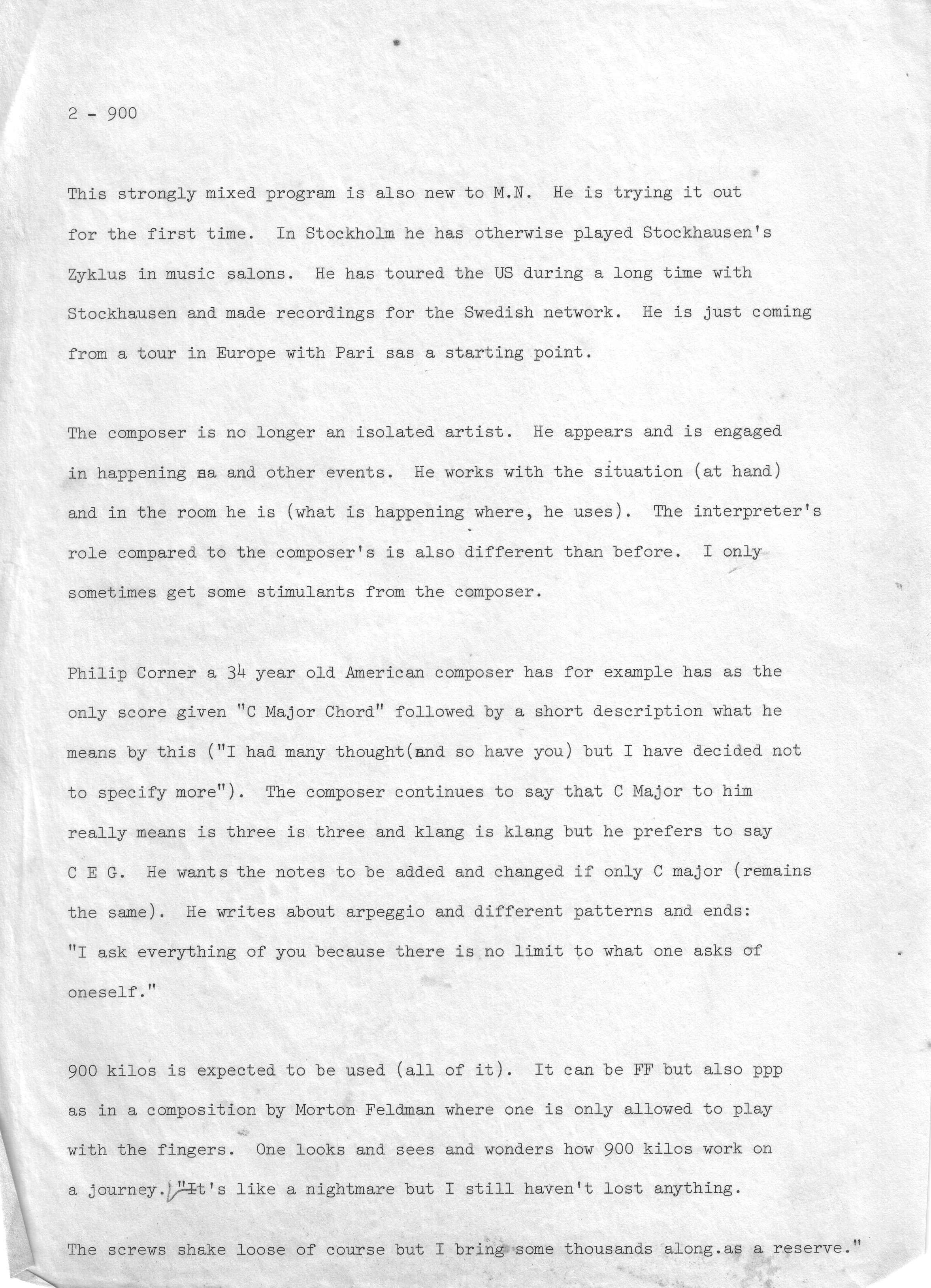 900 KILOS WORK ON A JOURNEY by Max Neuhaus, 20 feb. 2002