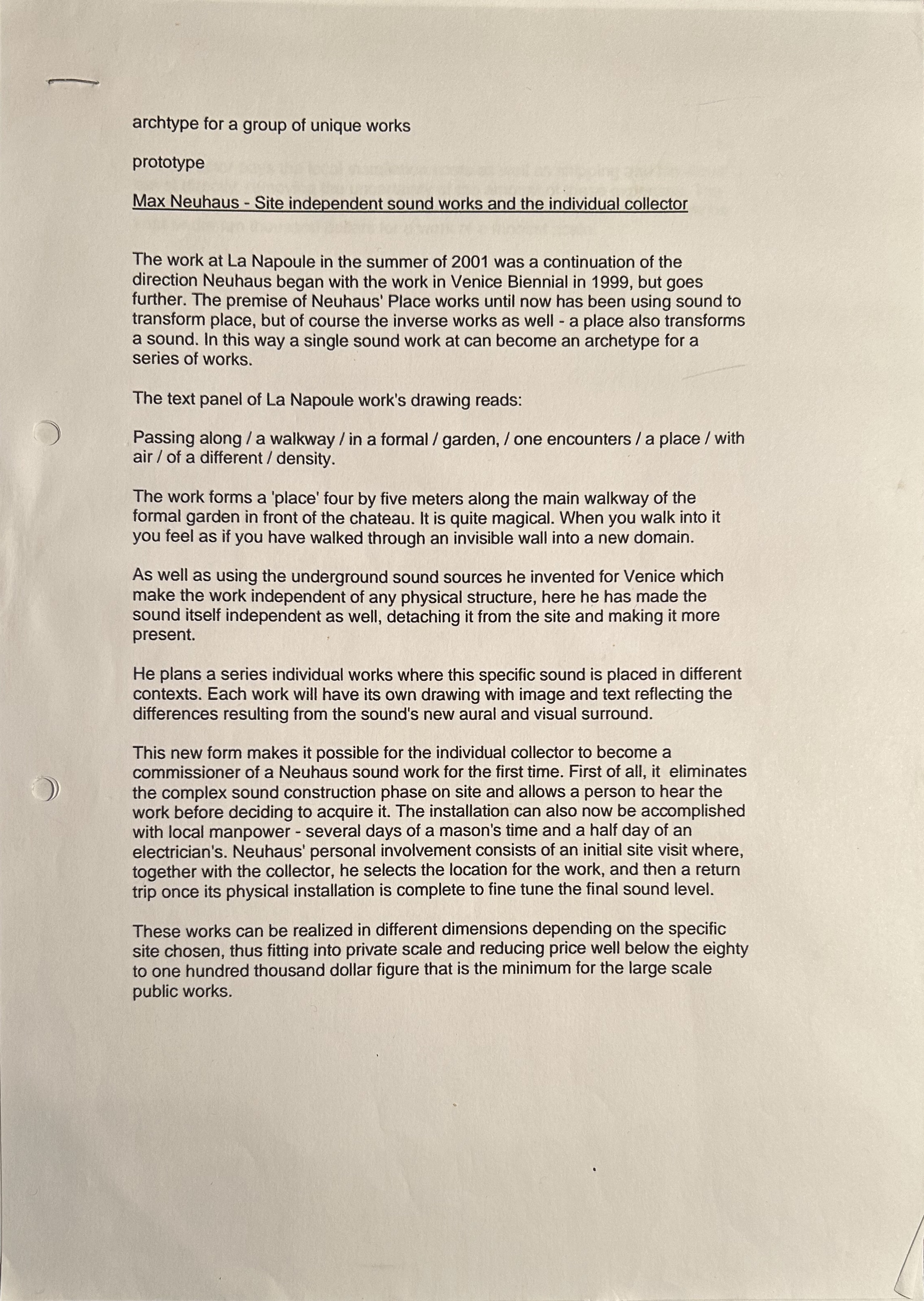 ARCHYPE FOR GROUP OF UNIQUE WORKS by Max Neuhaus, 2001