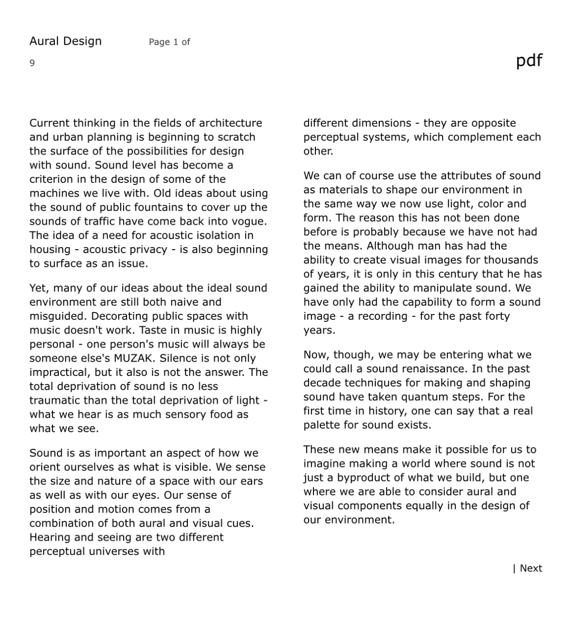 AURAL DESIGN by Max Neuhaus [Dutch, English], Kunst + Museum Journaal (Amsterdam), vol. 4, no. 6 (1993)