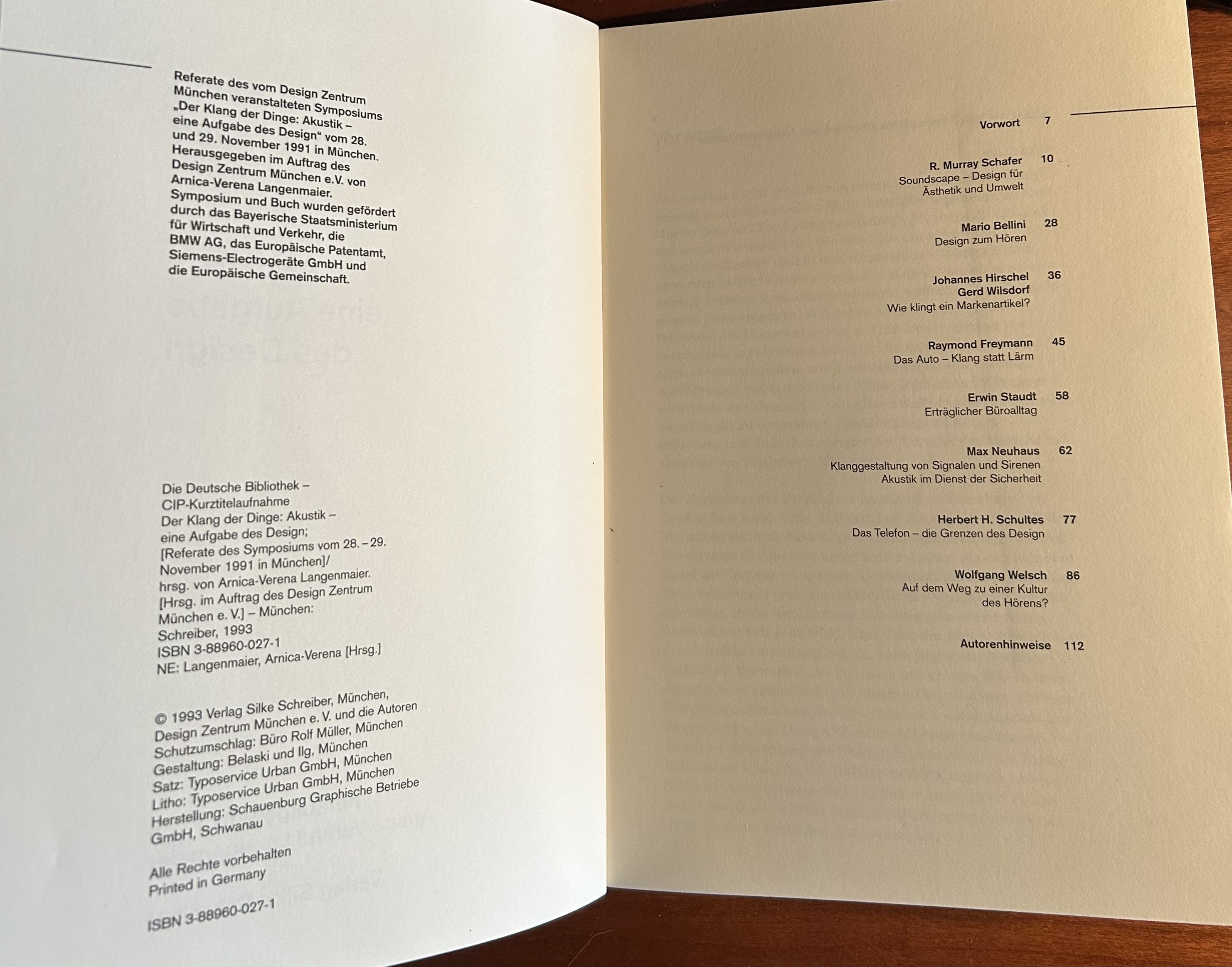 Der Klang der Dinge : Akustik - eine Aufgabe des Design ; [Referate des vom Design Zentrum München veranstalteten Symposiums "Der Klang der Dinge: Akustik - eine Aufgabe des Design" vom 28. und 29. November 1991 in München].