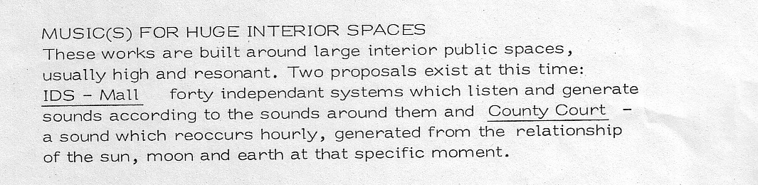 MNE-TEXT, Music(s) For Huge Interior Space By Max Neuhaus, 1974