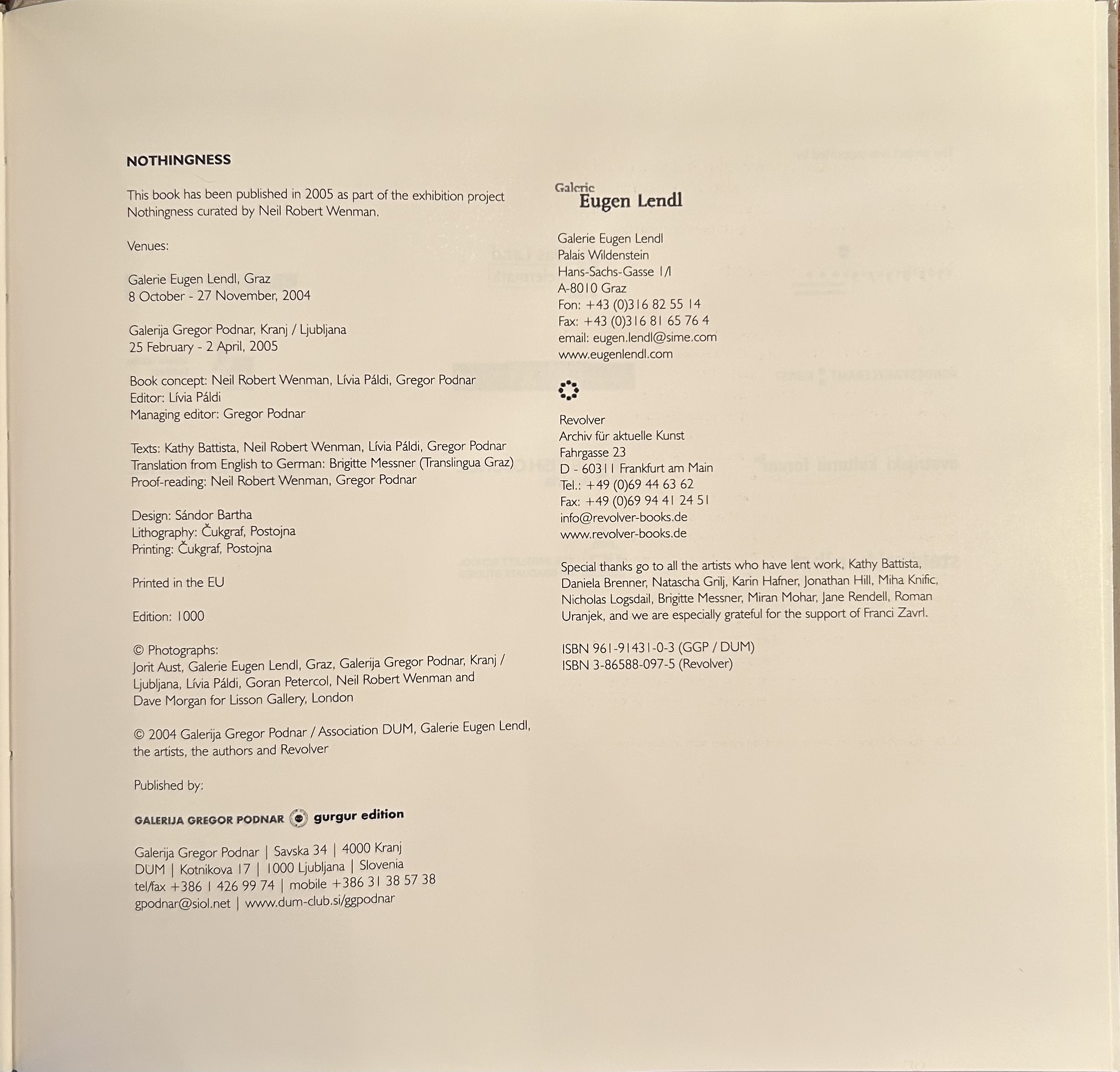 Lachgas Luft, Nothingness, edited by Livia Páldi, 2004