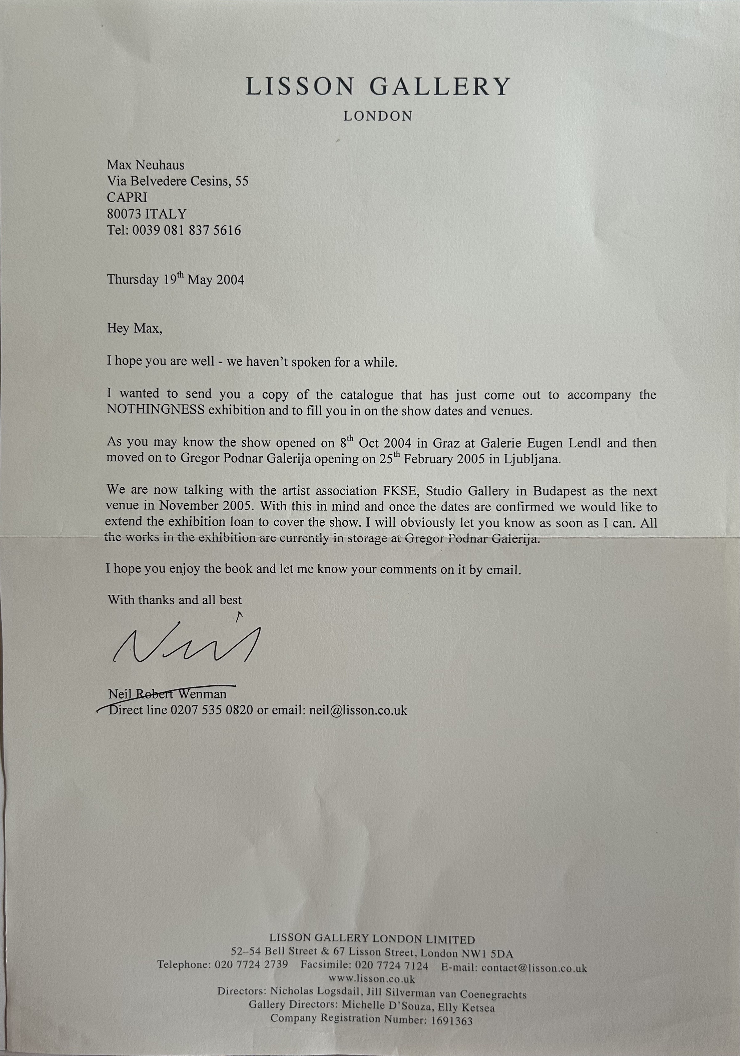 Max Neuhaus Nothingness Galerie Eugen Lendl, Graz, 08. Oct 27. Nov 2004