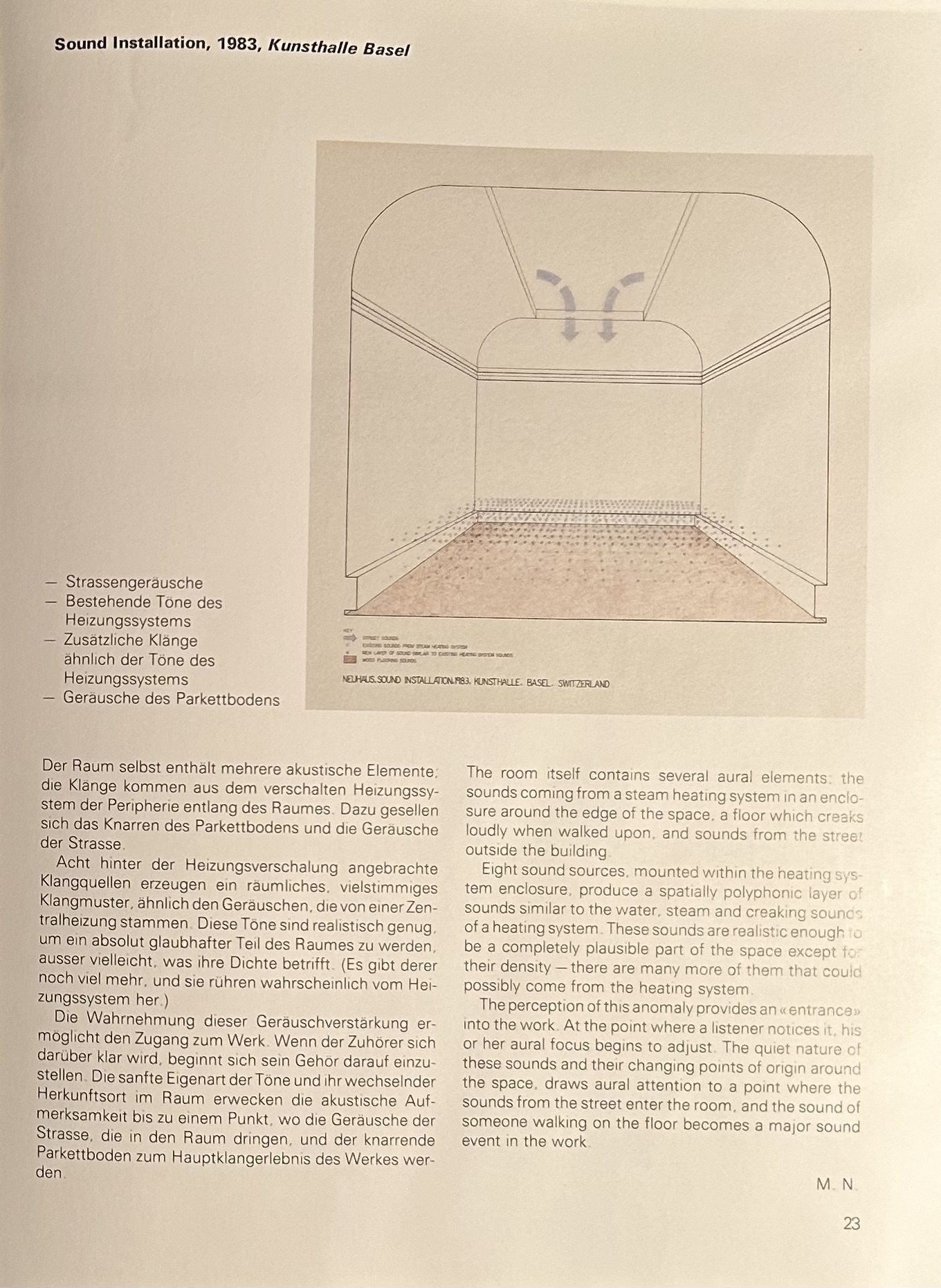 Sound Installation, Kunsthalle Basel, (text German and English) by Max Neuhaus 1983