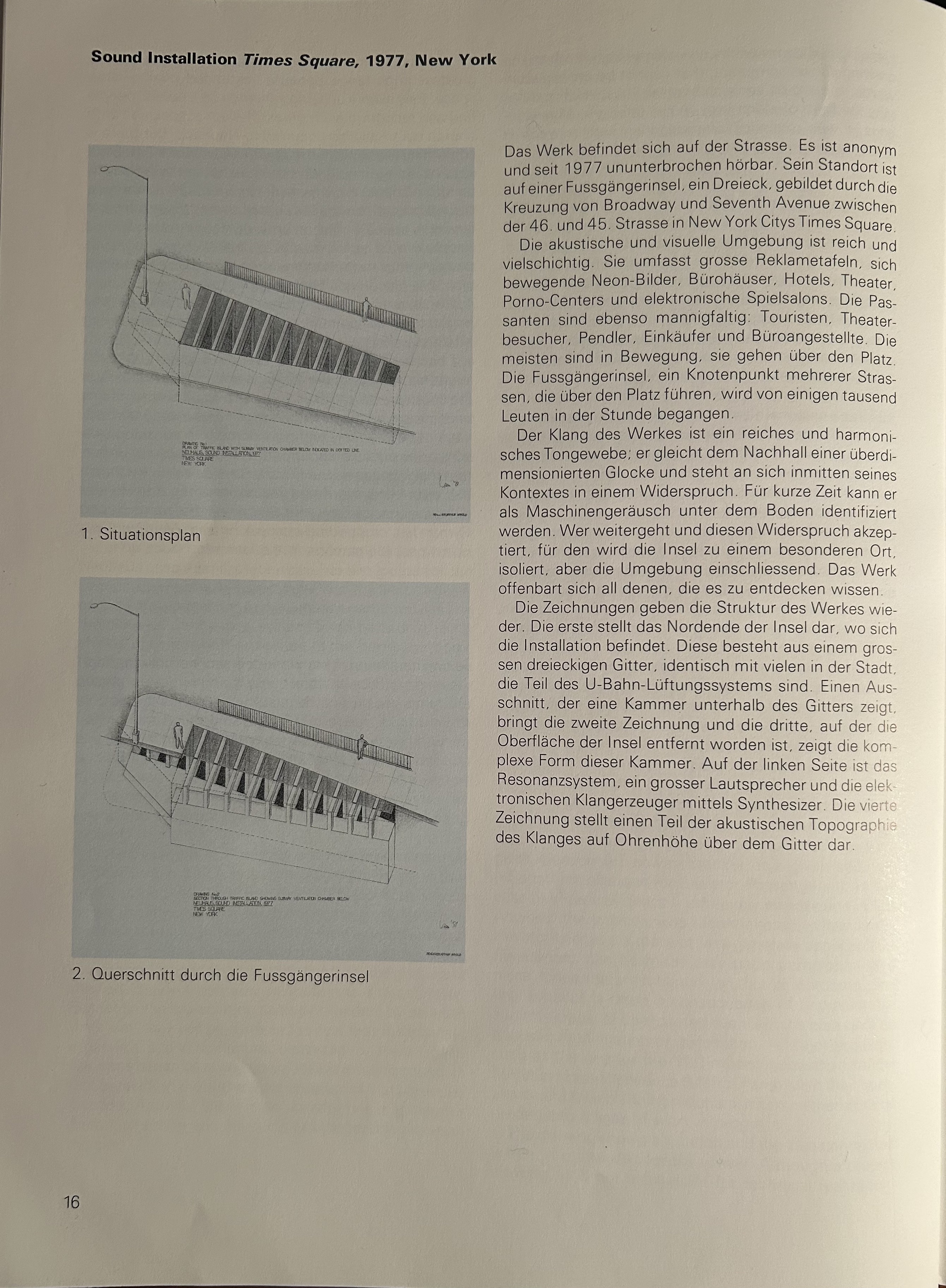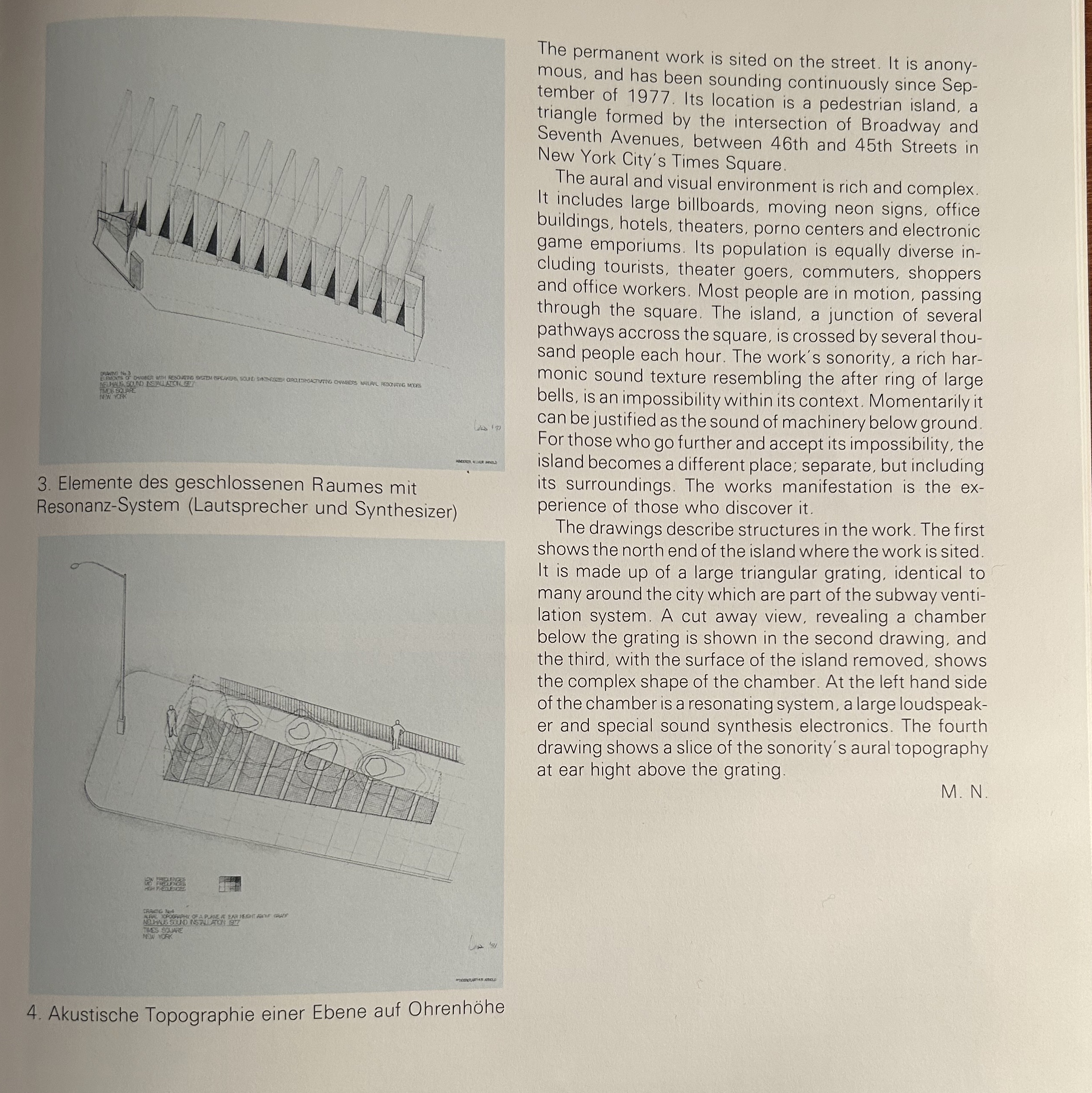 The Sound Installation In Times Square by Max Neuhaus, (Text German and English). Published 1983