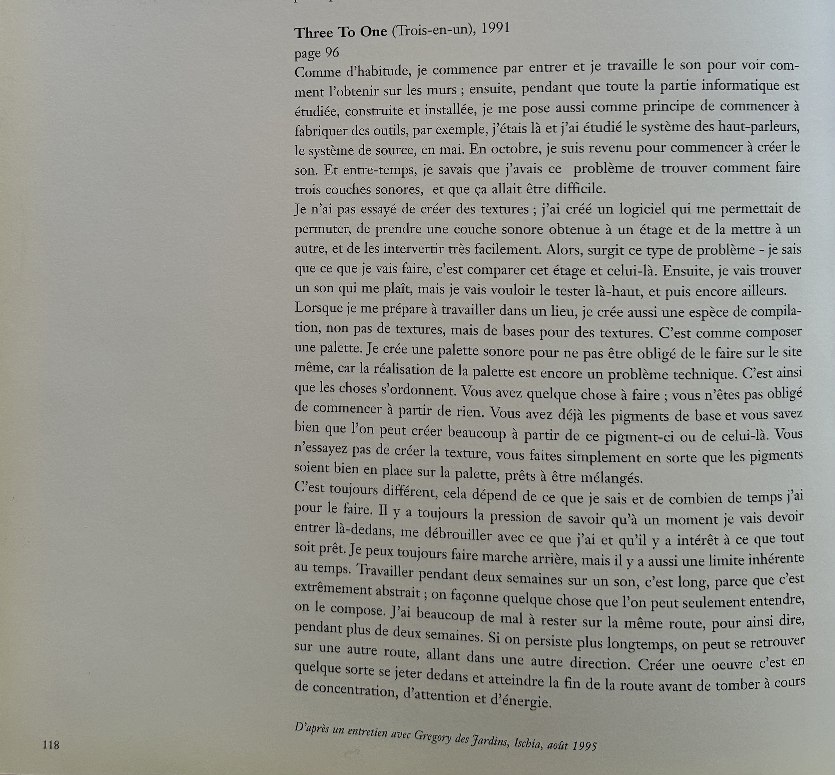 Published in Max Neuhaus. Evoking the Audible. 1995. Italian and French