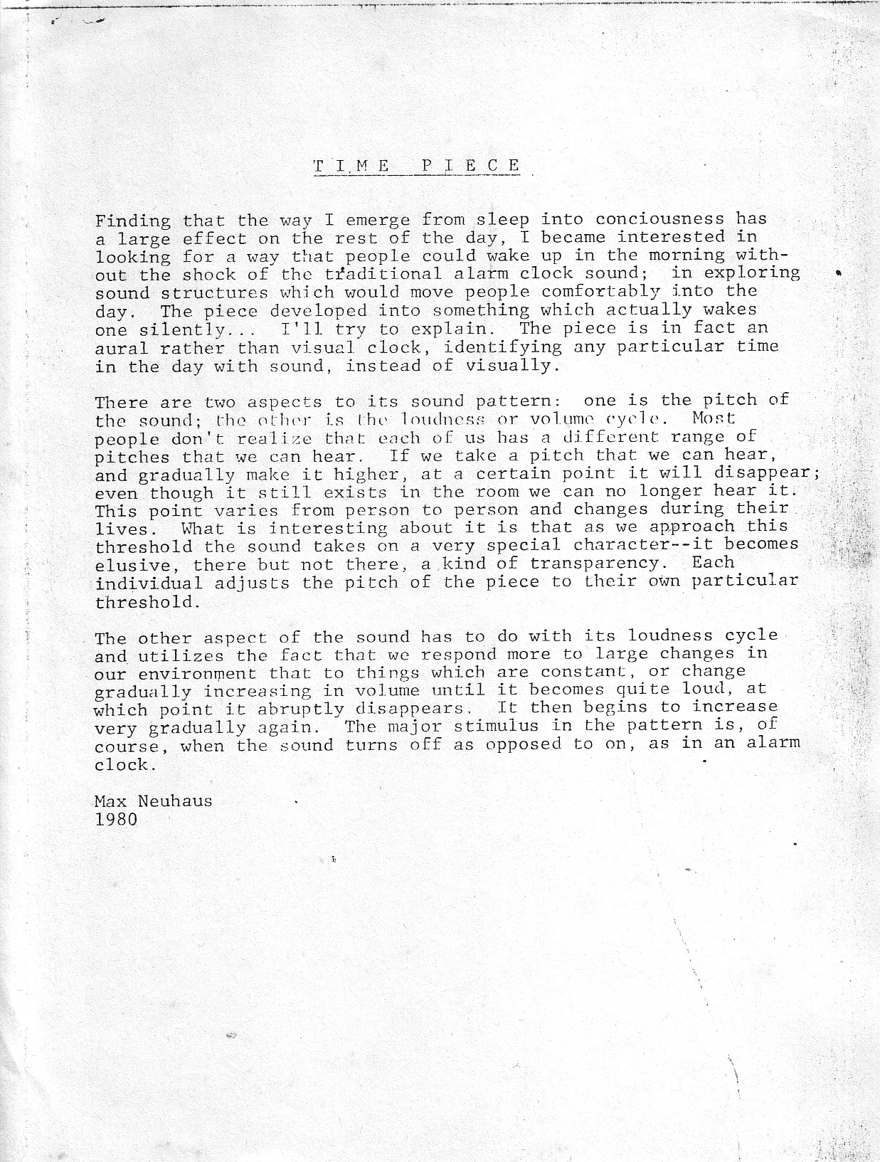 TIME PIECE by Max Neuhaus, Text 1980