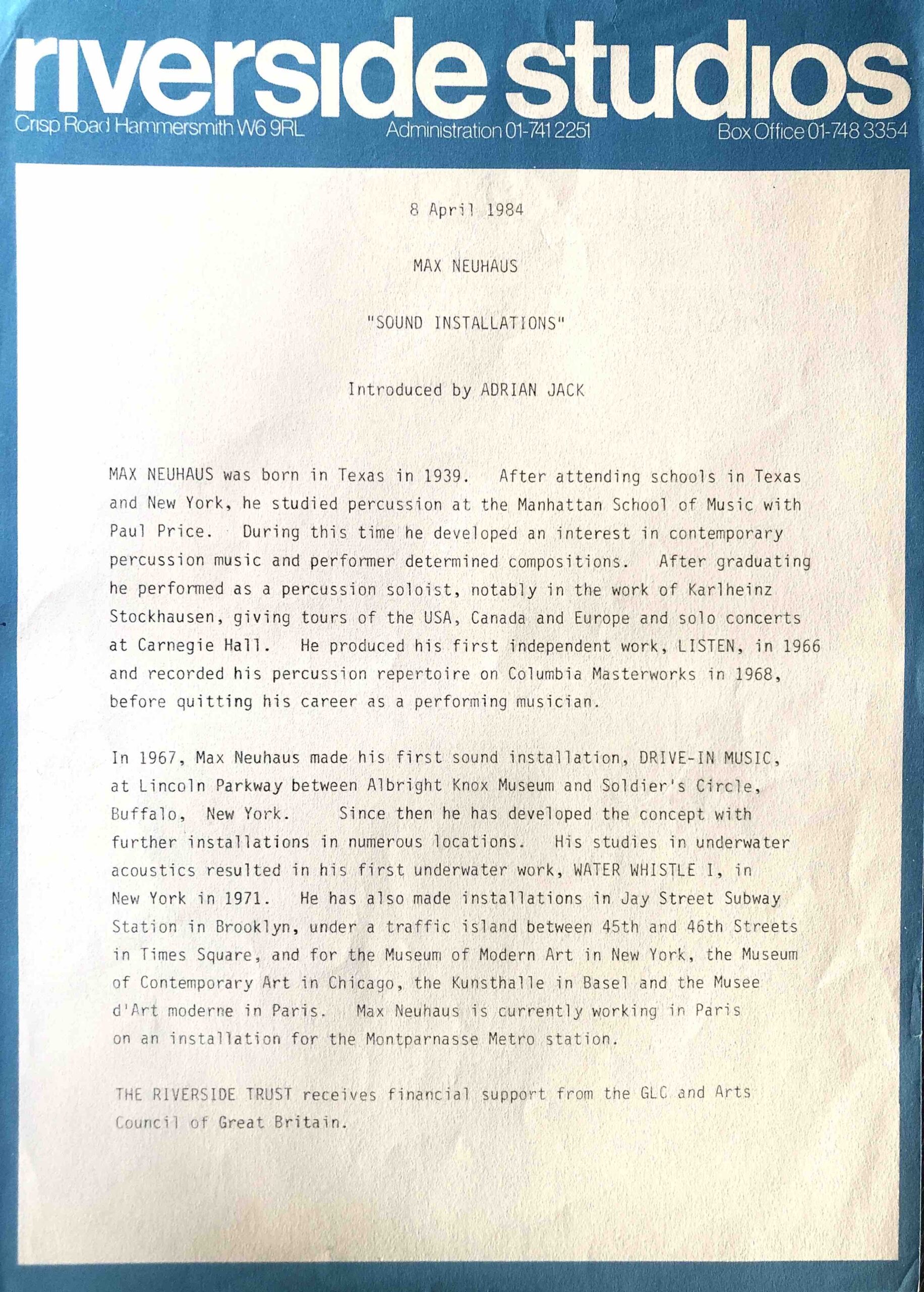 Adrian Jack, Max Neuhaus "Sound Installations".