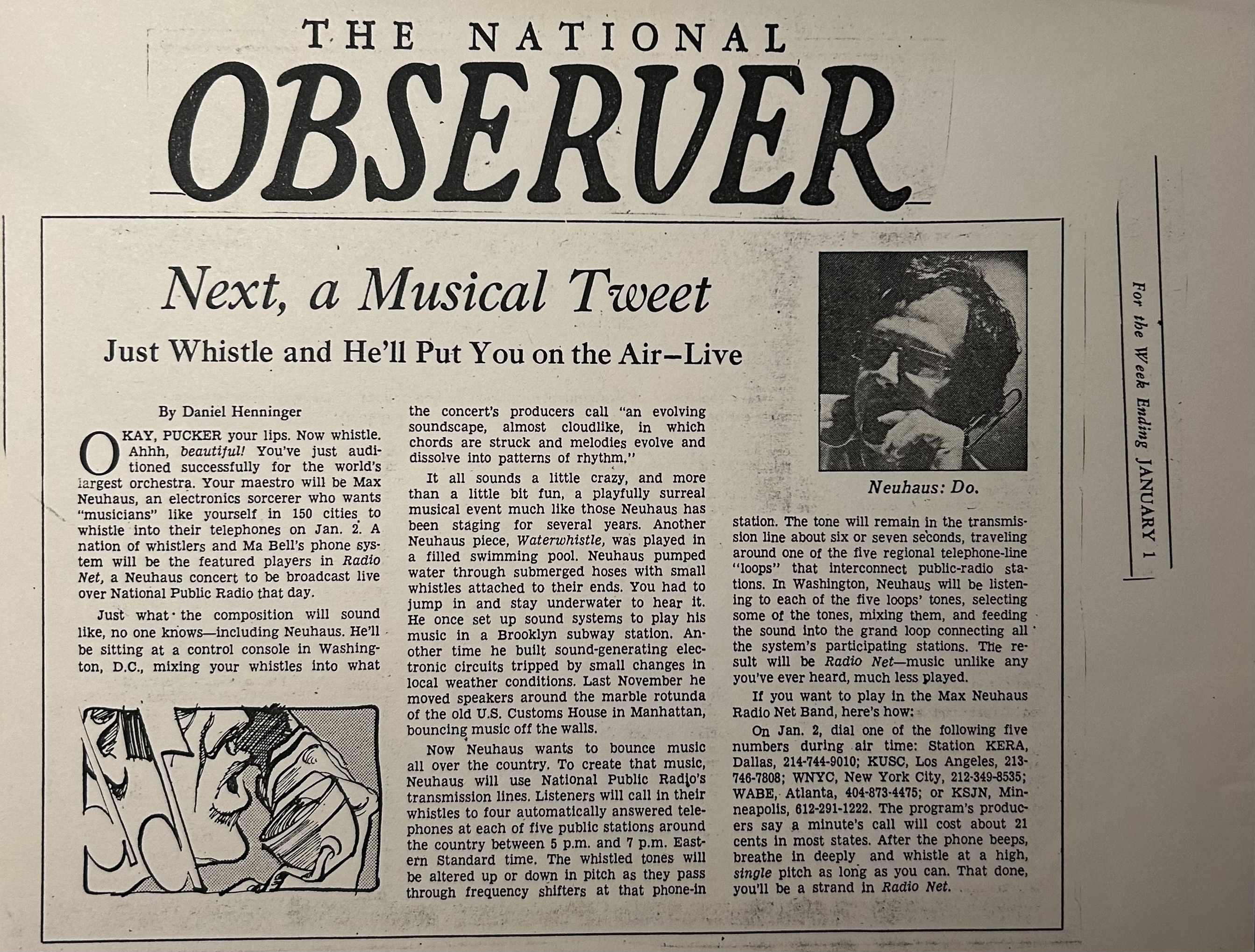 Daniel Henninger, Next, a Musical Tweet - Live. The National Observer, Jan 15, 1972 MNE-PRESS