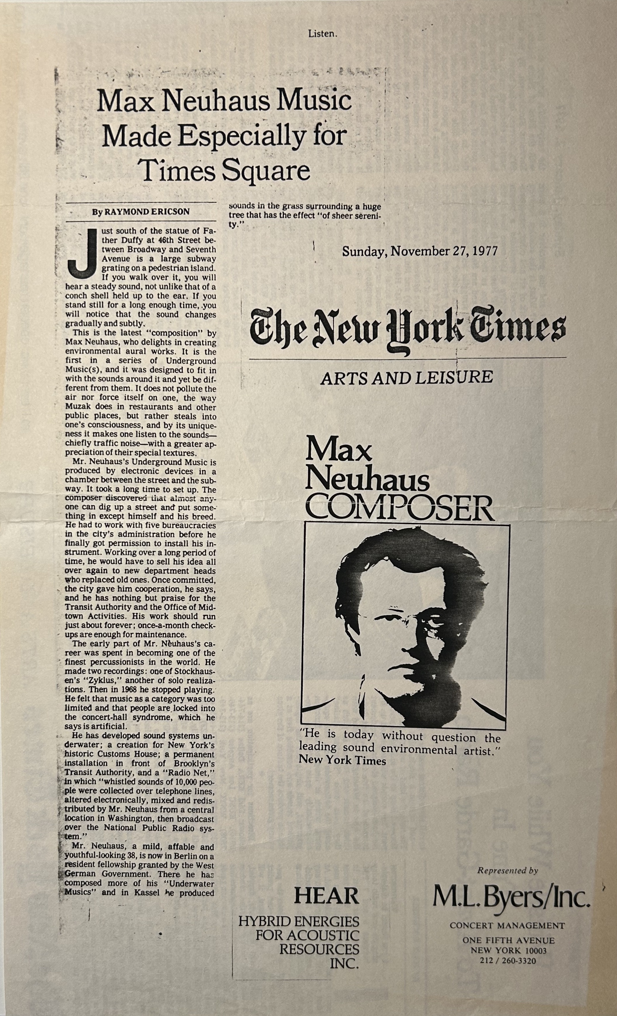 https://www.nytimes.com/1977/11/27/archives/max-neuhaus-music-made-especially-for-times-square.html