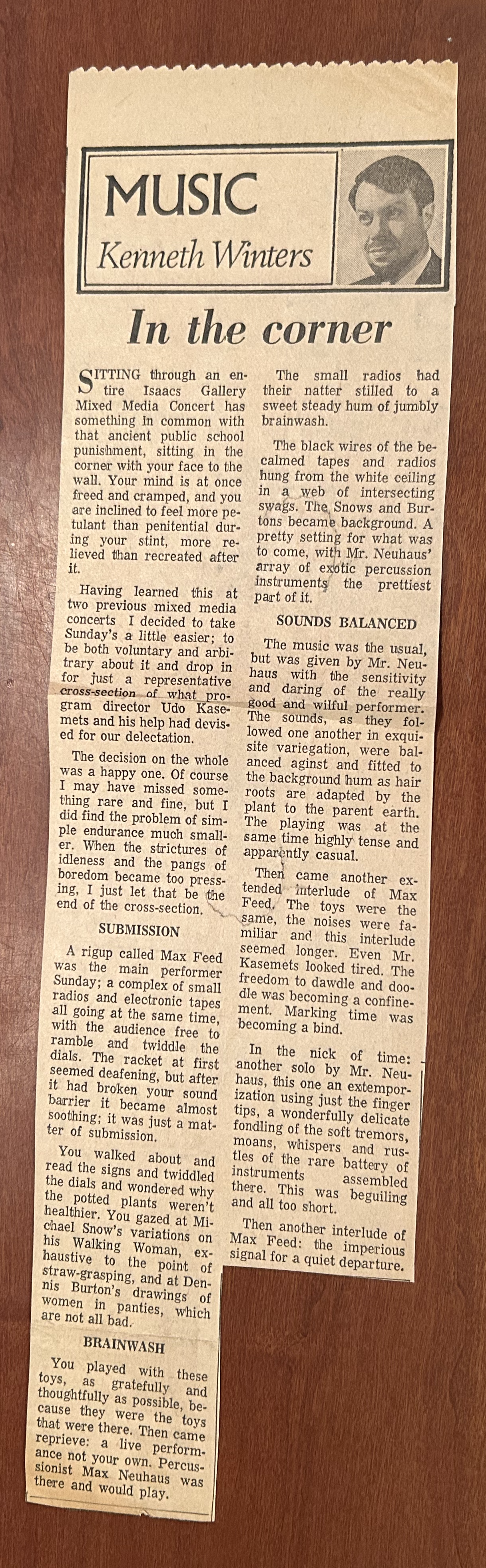 Winters, Kenneth. “In the Corner.” The Toronto Telegram. May 2, 1966.