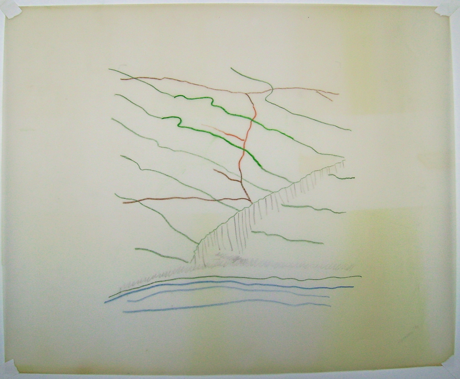Drawings from a sound work commissioned by the city of Geneva for a national exhibition, Weg der Schweiz, outdoors in the surroundings of Lake Luzern in 1990.