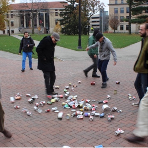 Event known as American Can, staged during the winter of 1966-67 in Staten Island’s Cloves Lakes Park (New York) and other locations around the city. Participants were invented to bounce or slide the cans that carpeted the ground, though whether they were given additional and temporal guidelines is no longer known.*