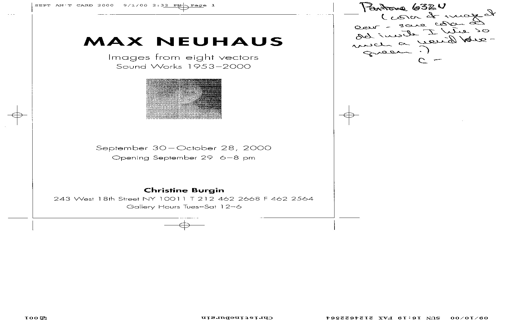 Drawings Exhibition Max Neuhaus “Images from Eight Vectors: 1953-2000” at the Christine Burgin Gallry, New York 2000