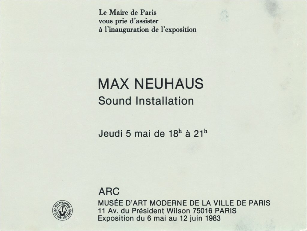 Exposition Max Neuhaus, Sound Installation, ARC Musée d'Art Moderne de la Ville de Paris, 6 mai au 12 Juin 1983