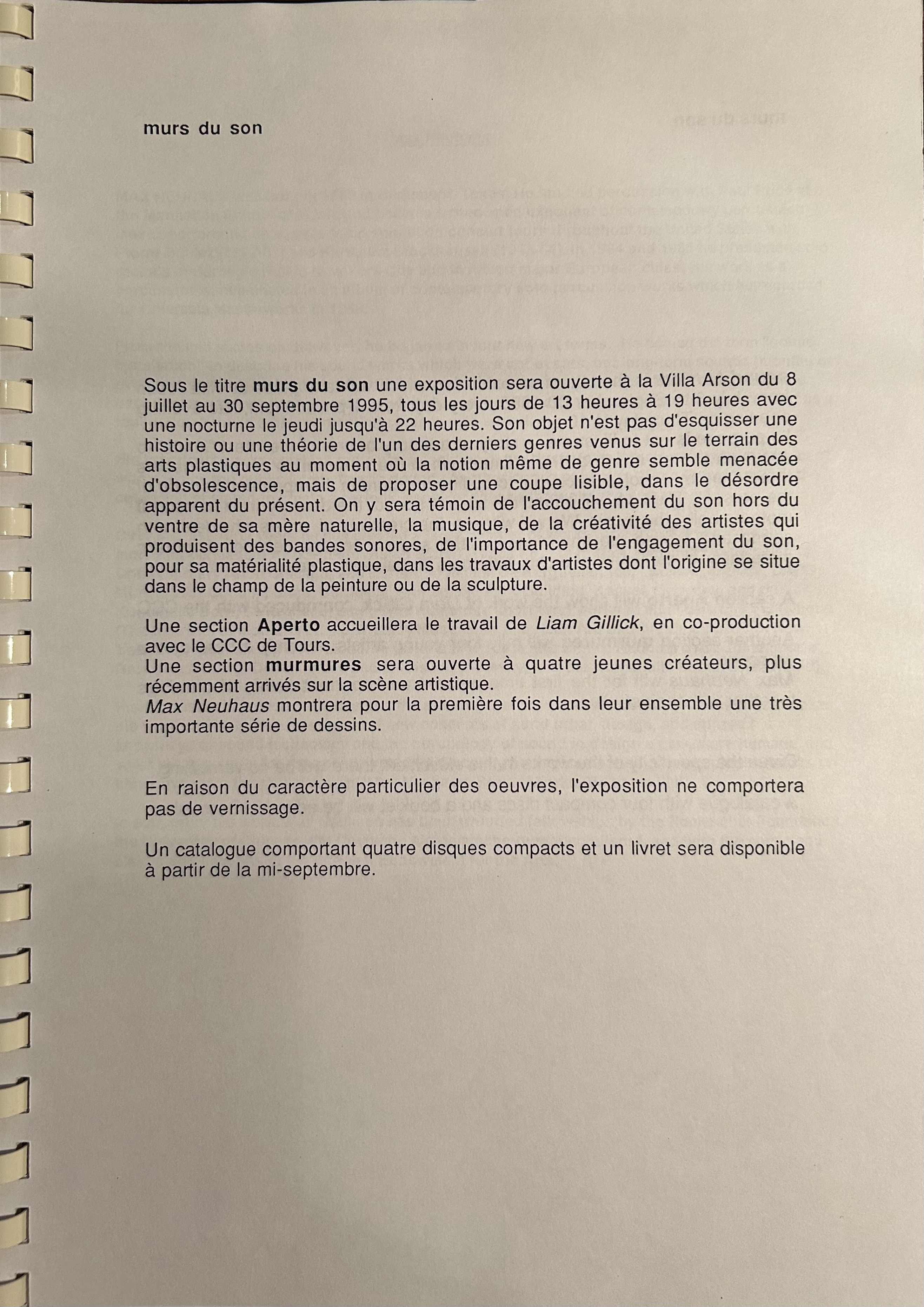 Max Neuhaus. Evoking the Audible. Evocare l'udibile/ Évoquer l'auditif, (Milan: Charta, 1995). Catalog