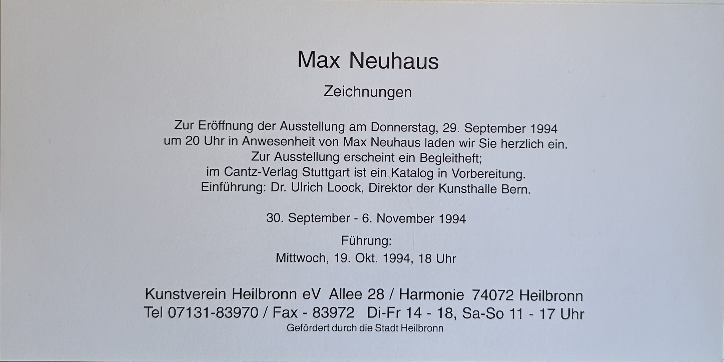 1994 - Max Neuhaus Zeichnungen, Kunstverein Heilbronn, 30 Sept. 6 Nov.