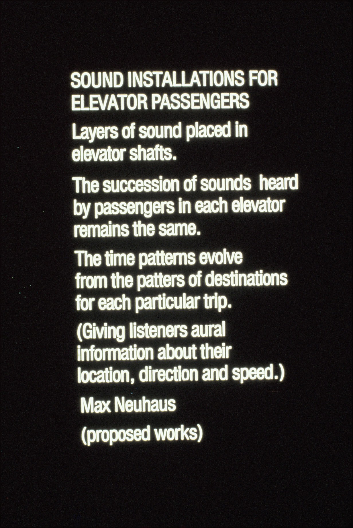 Underwater Music II, 1976, Institute for Art & Urban Resources, New York