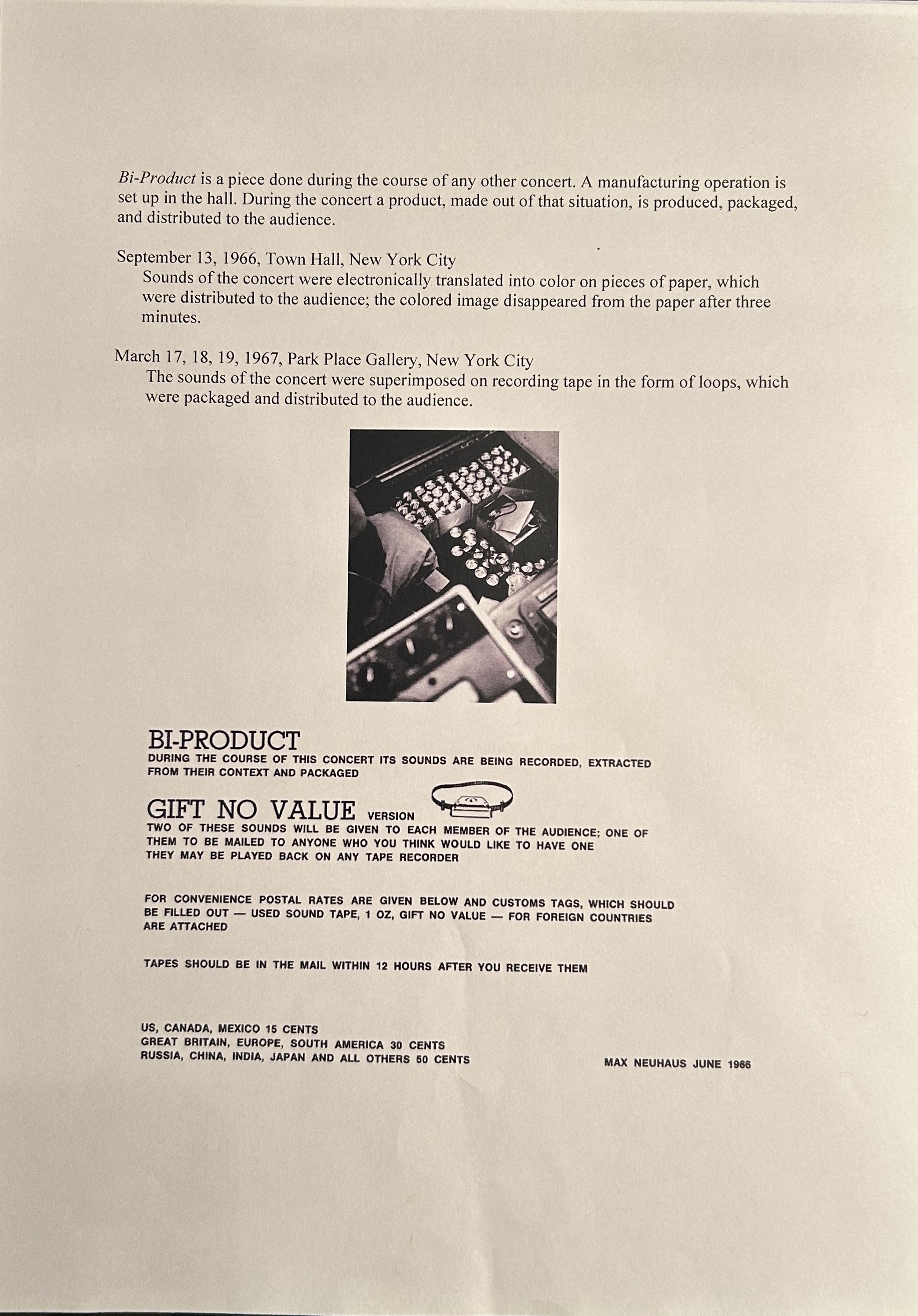 BI-PRODUCT by Max Neuhaus (Gift No Value), June 1966© Copyright Neuhaus Estate