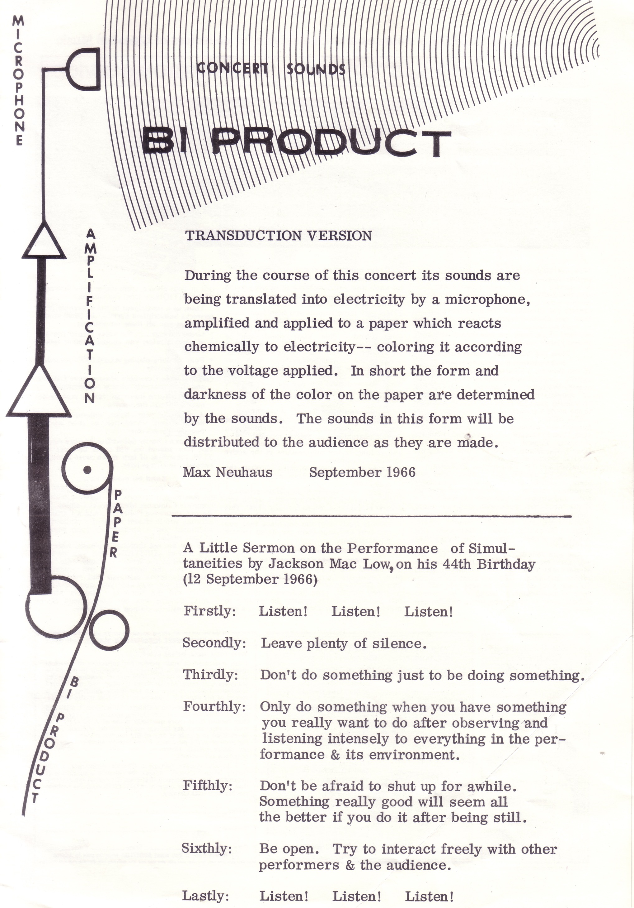 -Max Neuhaus, Bi-product Town Hall, New York City, September 13, 1966