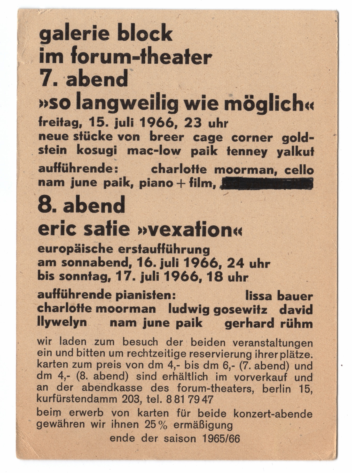 Details of the 1963 Vexations performance