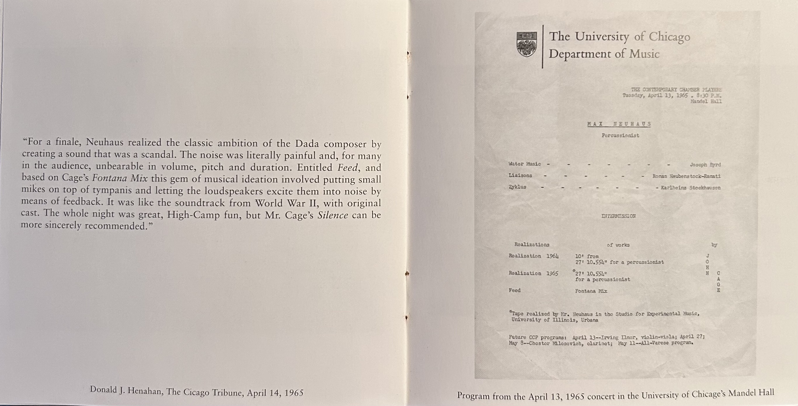 Max Neuhaus. Fontana Mix-Feed. Mass Art, Inc. 1966. LP