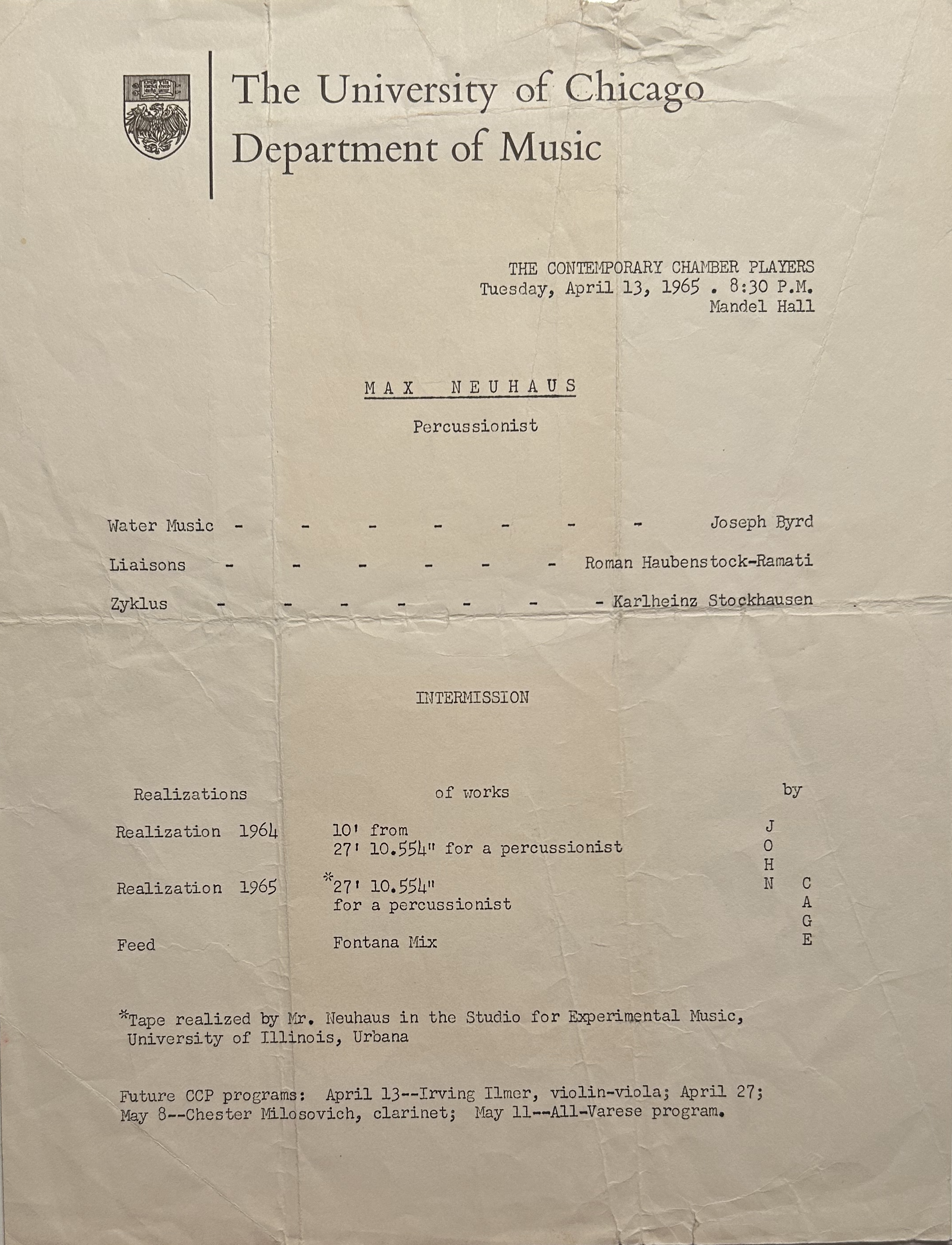 Max Neuhaus. Fontana Mix-Feed. Mass Art, Inc. 1966. LP