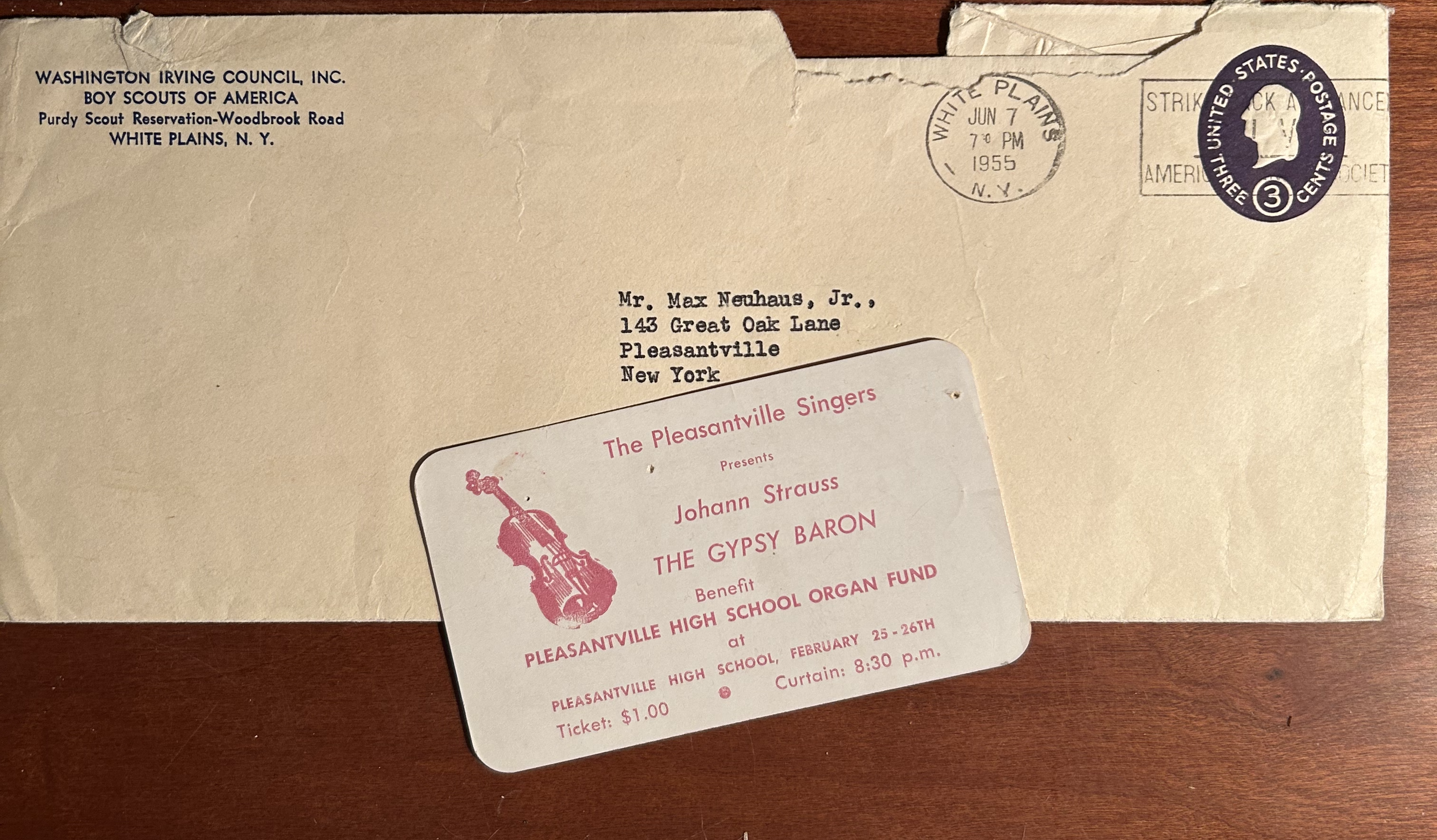 Max Neuhaus, percussions, Gypsy Baron, The Pleasantville Singers, PLEASANTVILLE HIGH SCHOOL ORGAN FUND at PLEASANTVILLE HIGH SCHOOL, FEBRUARY 25 - 26TH Pleasantville, New York, March 5, 1955