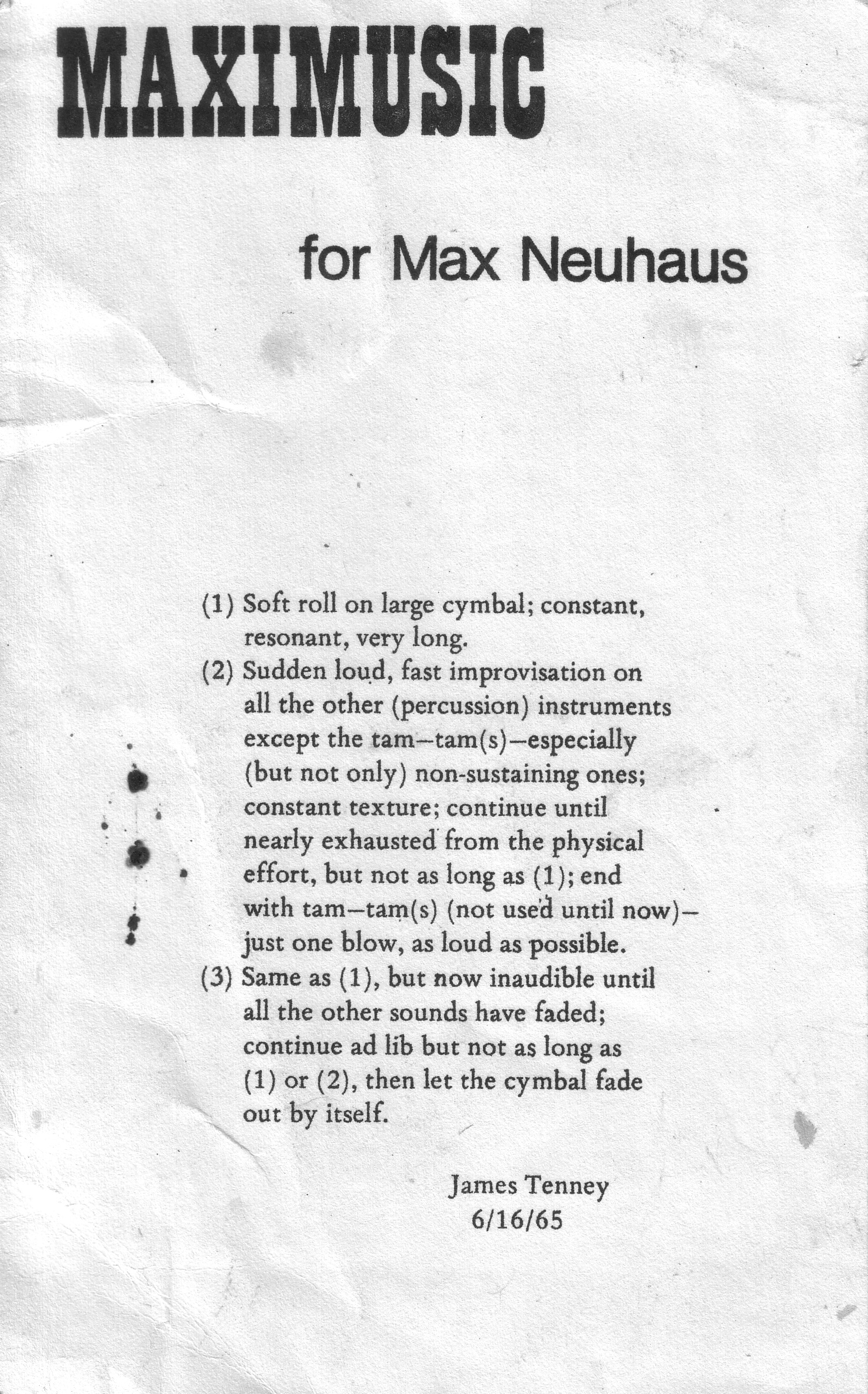 Inive1965: MAXIMUSIC for Max Neuhaus, Collection The Estate of Max Neuhaus.