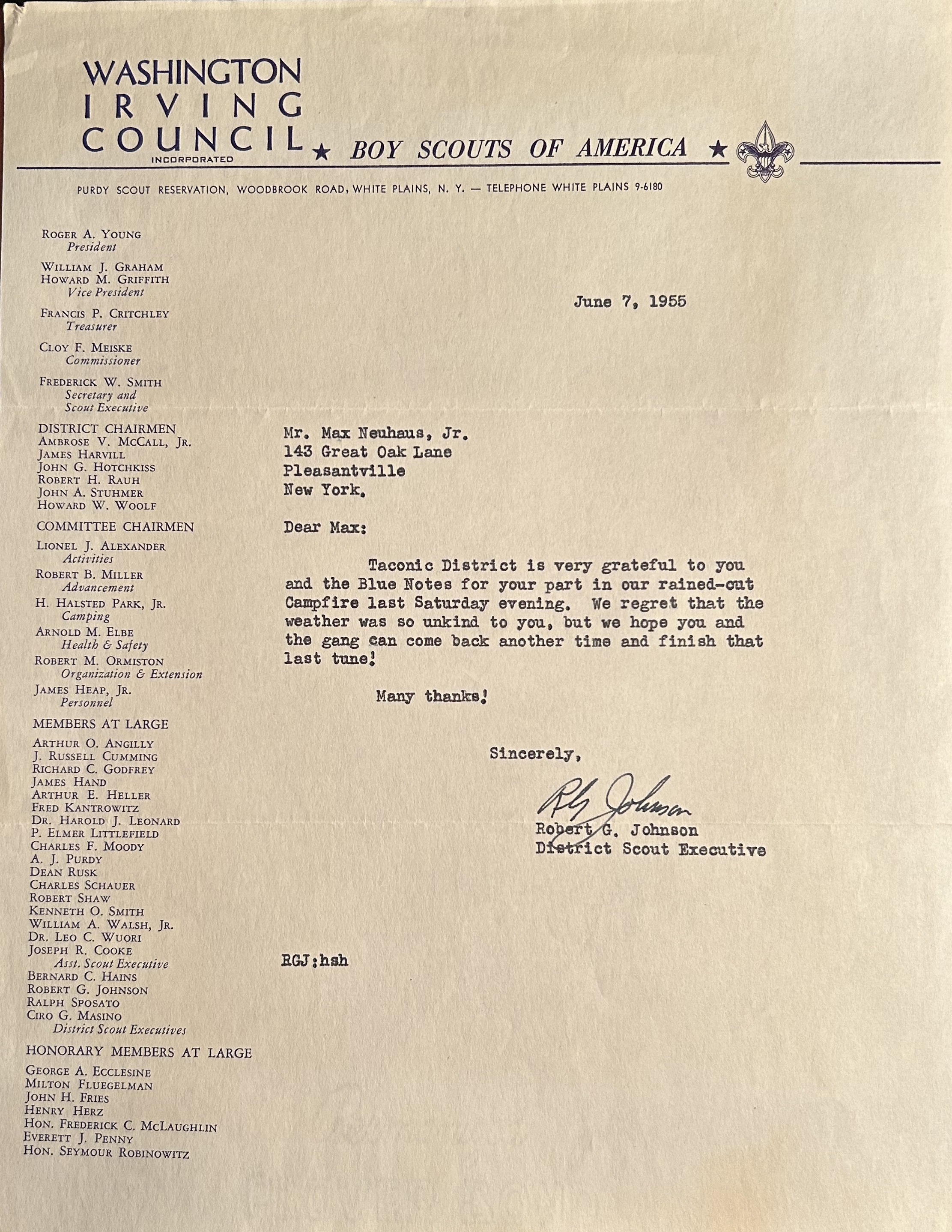Washington irving Council* BOY SCOUTS OF AMERICA, WOODBROOK ROAD, WHITE PLAINS. N. Y. Program Blue Note, Saturday, June, 1955