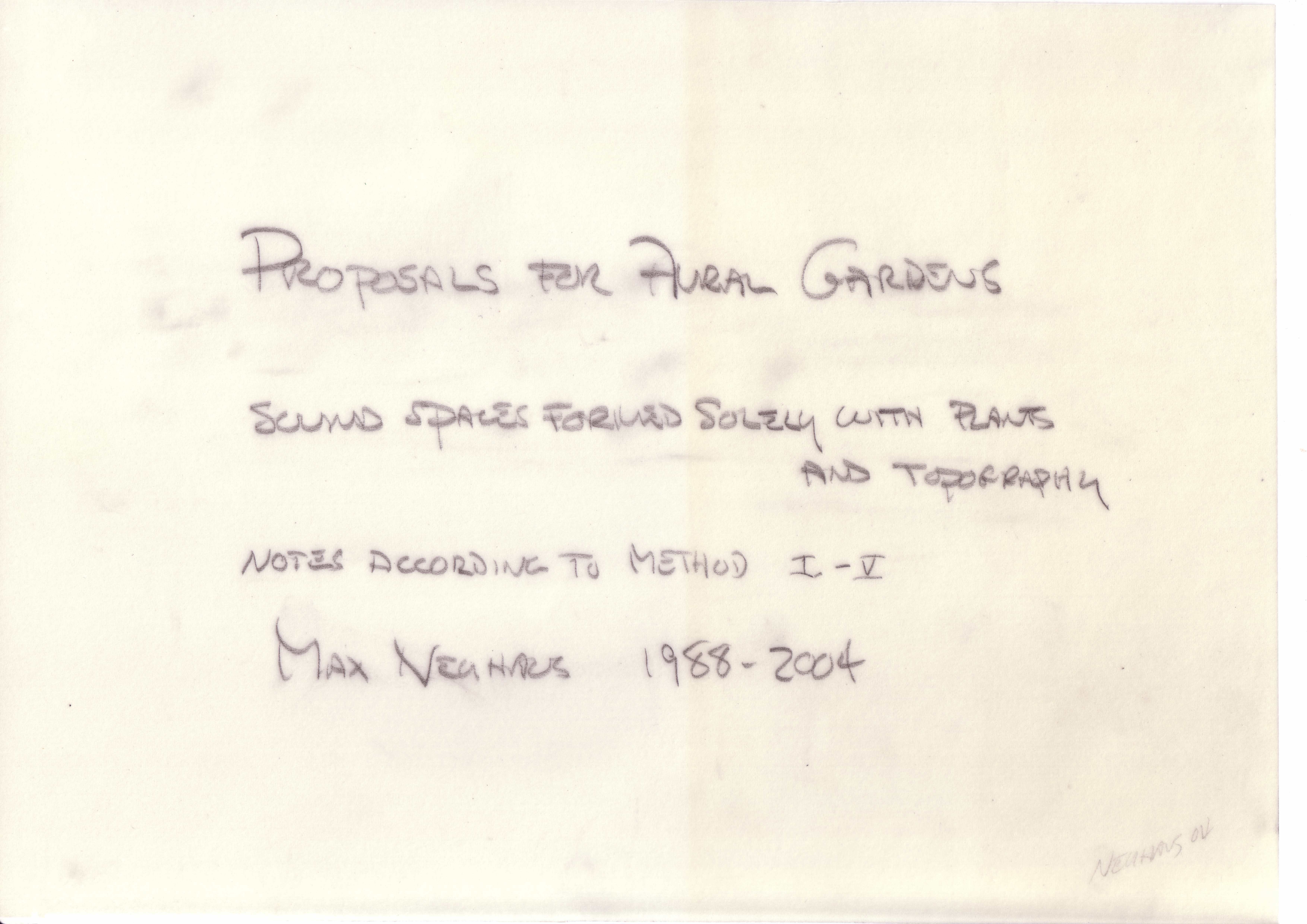 aural-gardens, Sound spaces formed solely with plants and topography, Notes on method I-V, 1988-2004