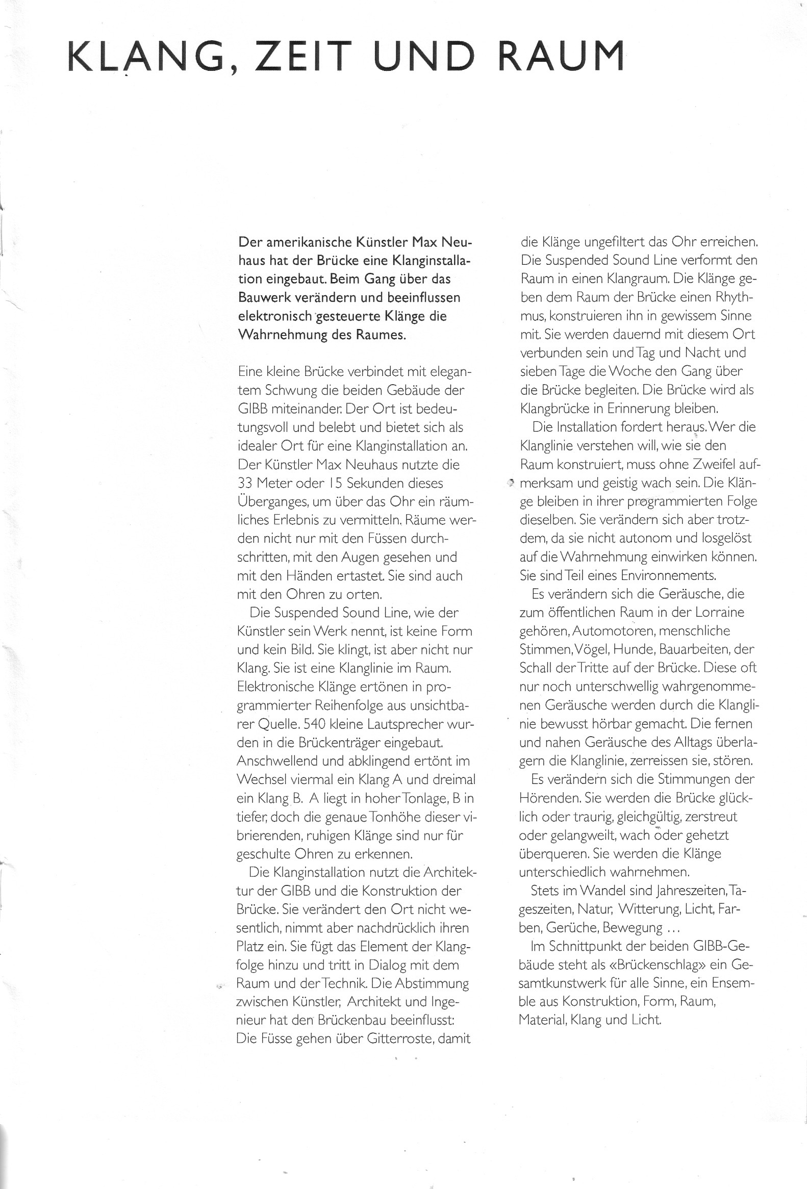 SUSPENDED SOUND LINE by Max Neuhaus. Collection: Kunst im öffentlichen Raum die Stadt Bern, Extant: 1999–Present
