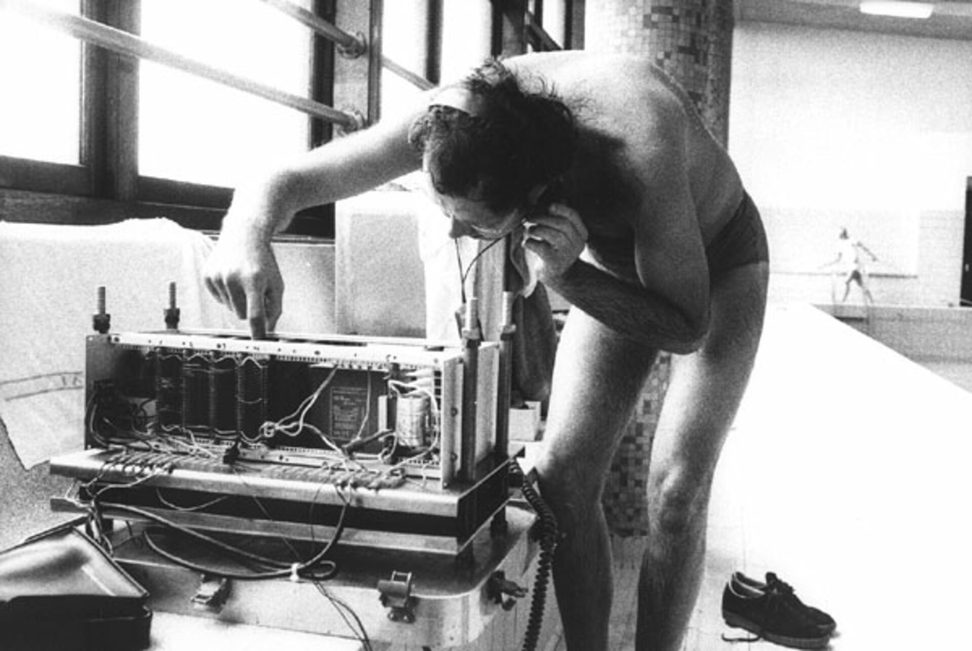 Exhibition Max Neuhaus, SOUND-INSTALLATION, in the exhibition sapace of 'de Applel, 'UNDER WATER MUSIC(S) / WATER WHISTLE' in the 'MANIXBAD', Marnixplein 5-9, Amsterdam.Wednesday 27 setember thru Saturday 30 september: 1978